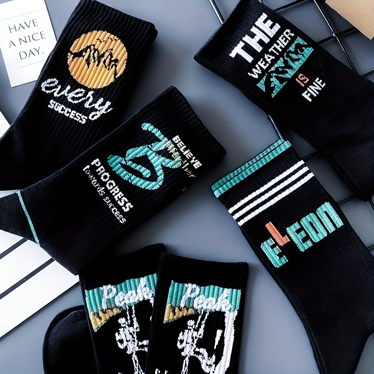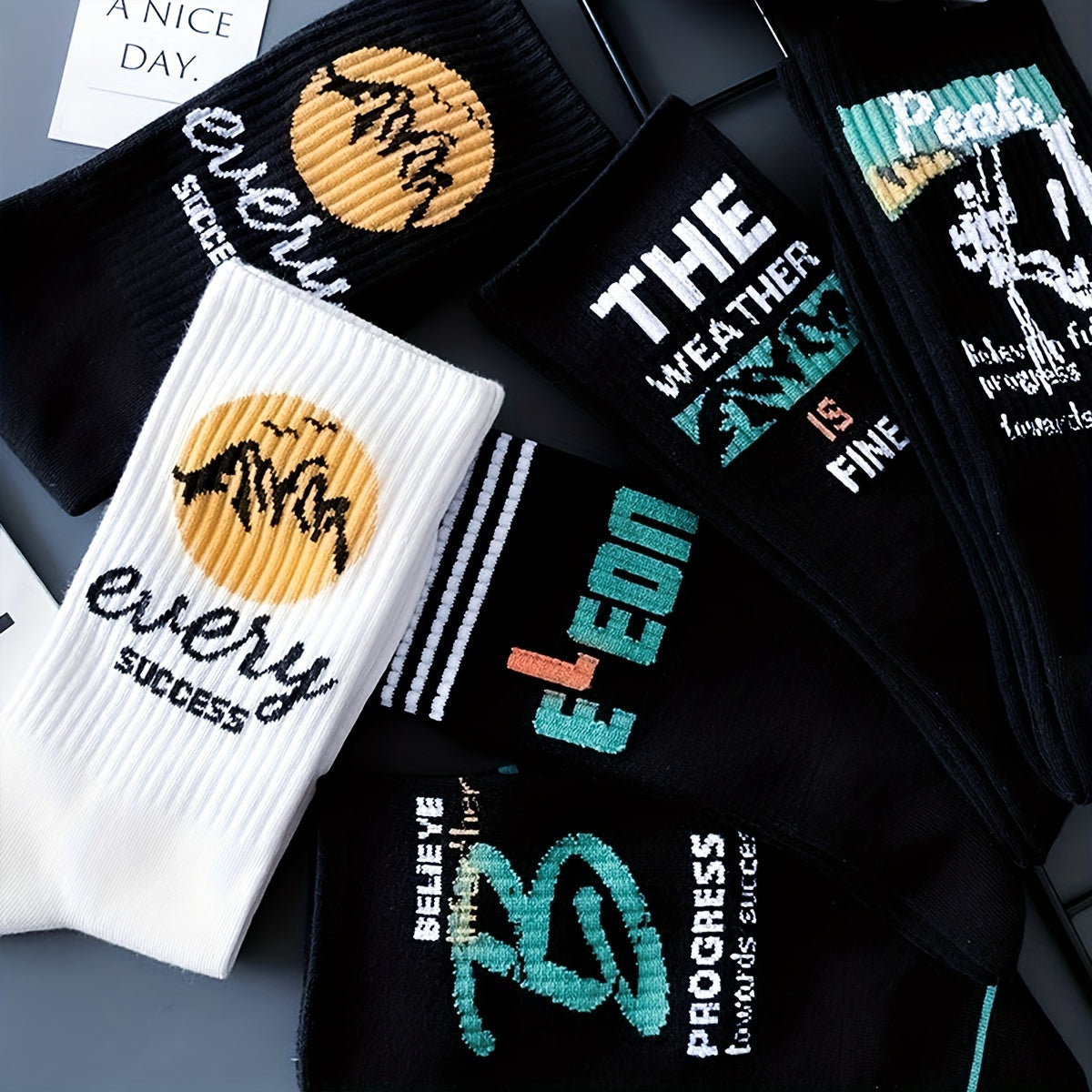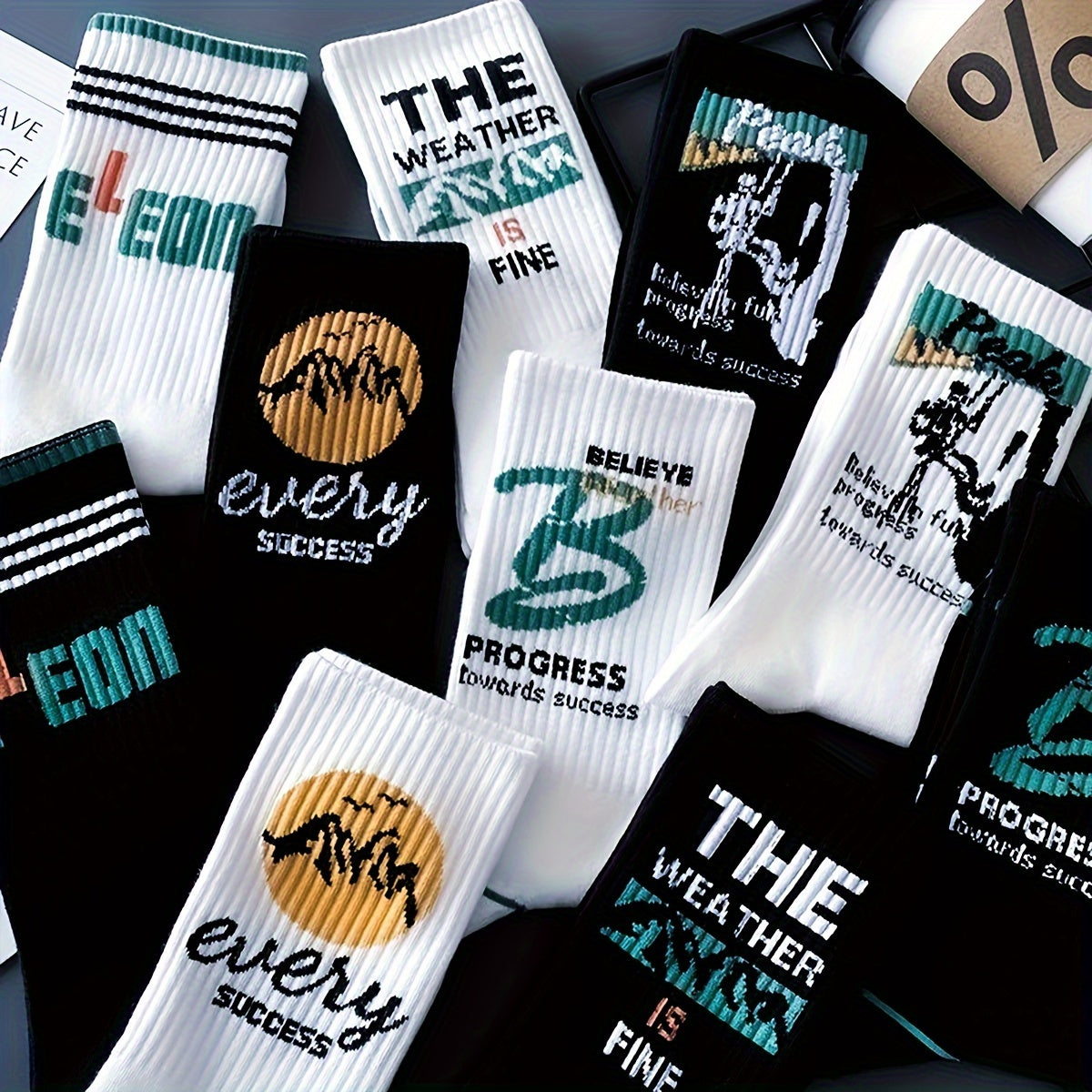 Мужские носки-кастомы 5/10 пар с граффити-буквенным узором, дышащие, повседневные, для улицы