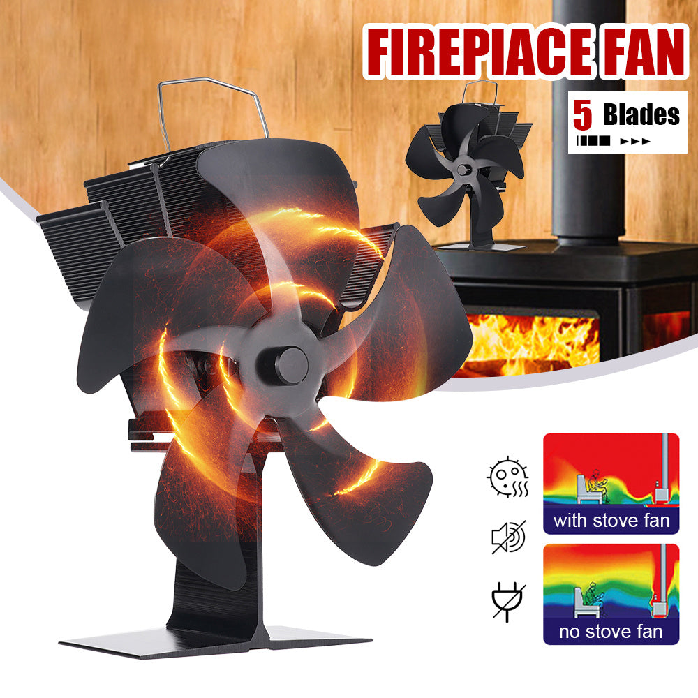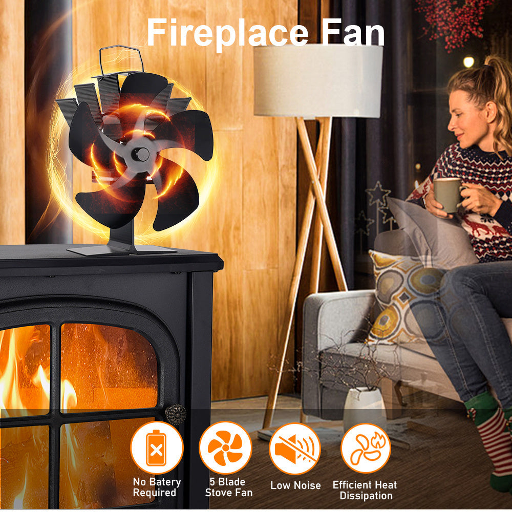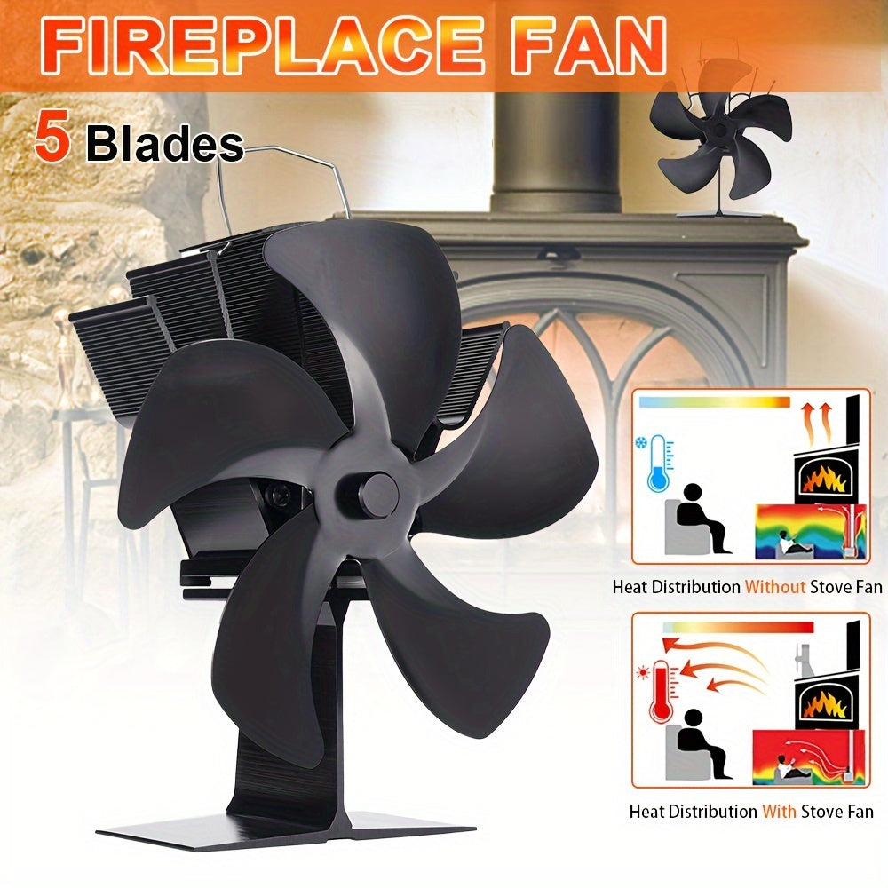 5-лопастной переносной вентилятор для камина — эффективное распределение тепла для дровяных печей и каминных горелок без электричества