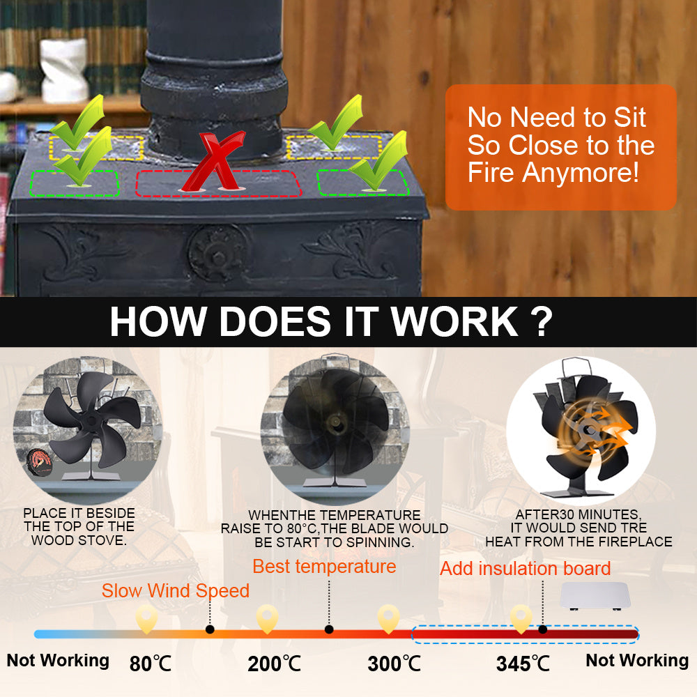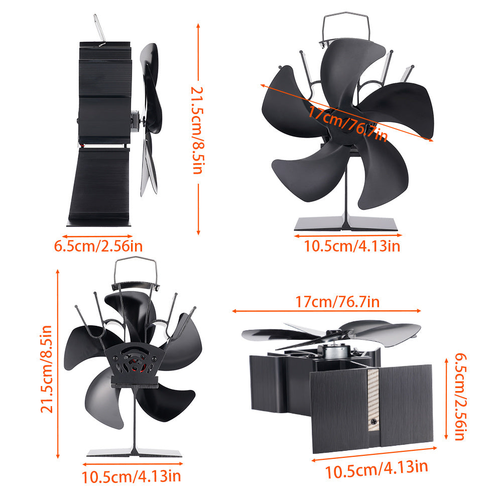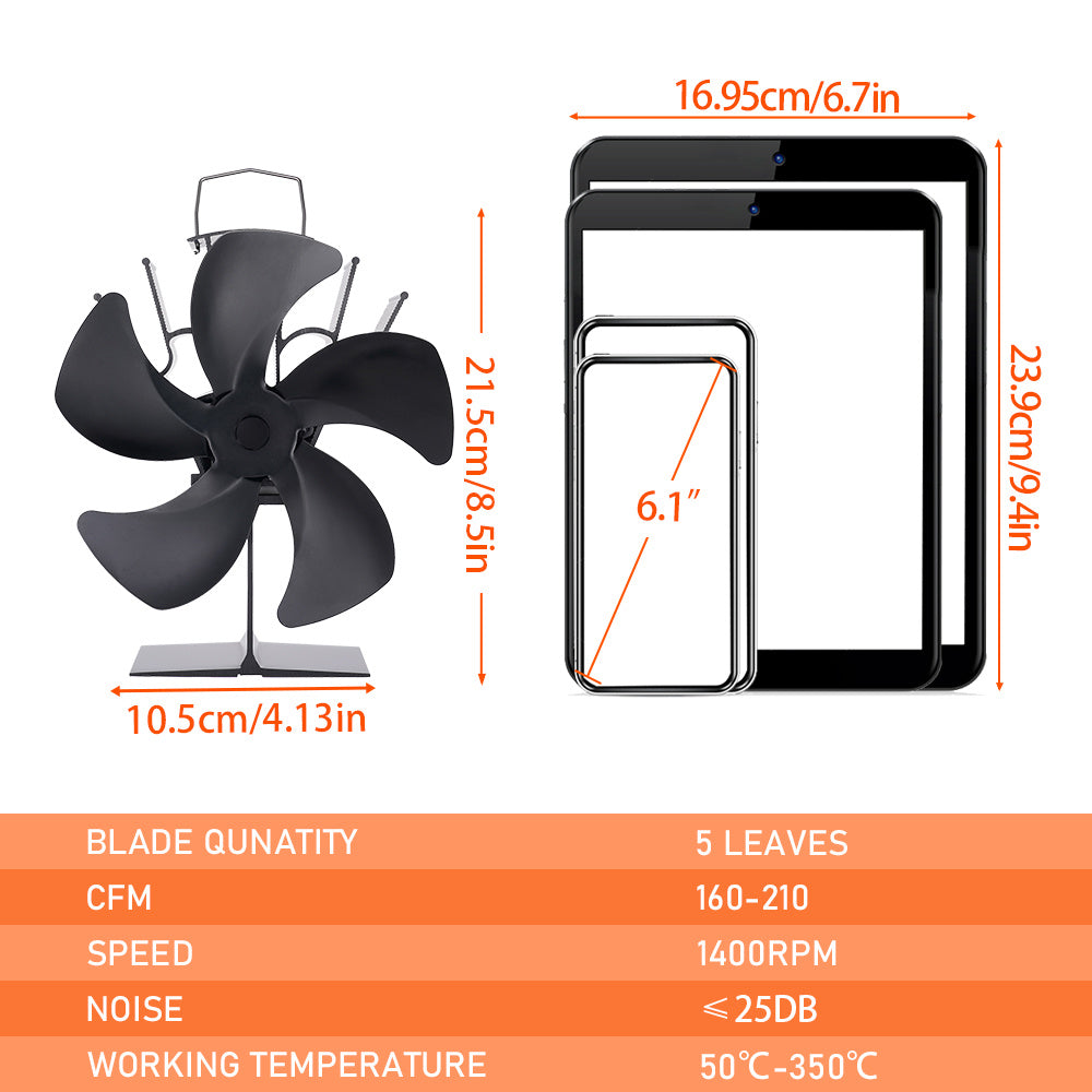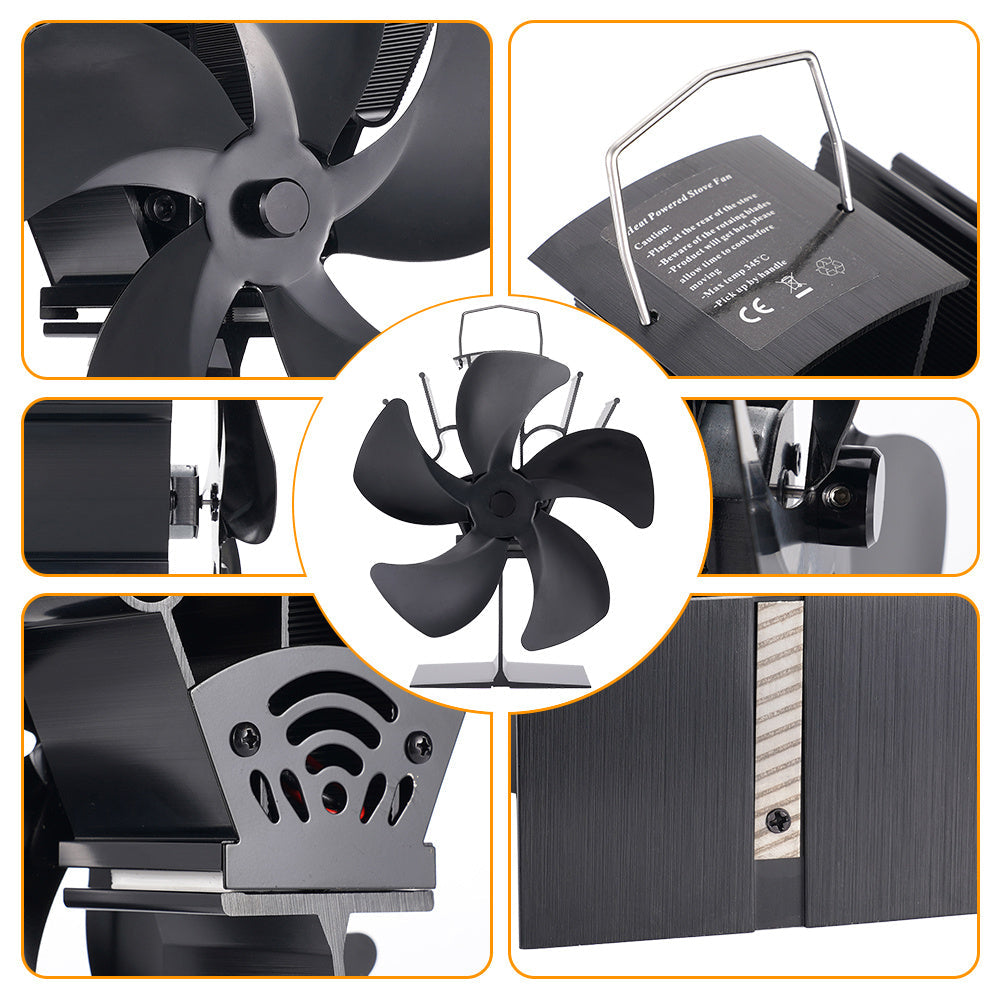 5-лопастной переносной вентилятор для камина — эффективное распределение тепла для дровяных печей и каминных горелок без электричества