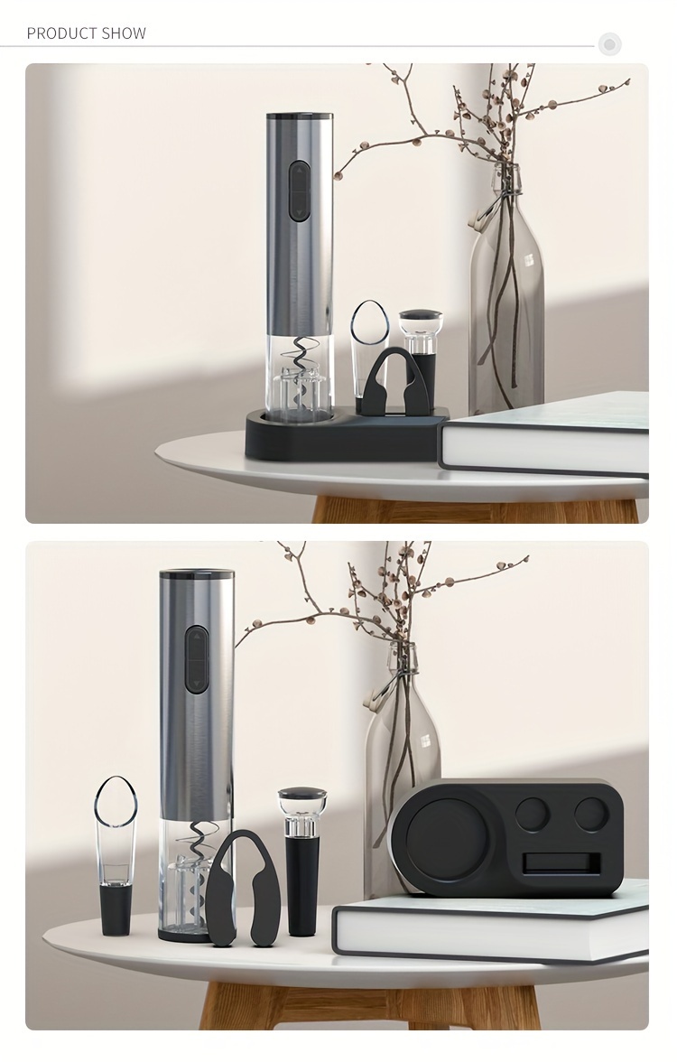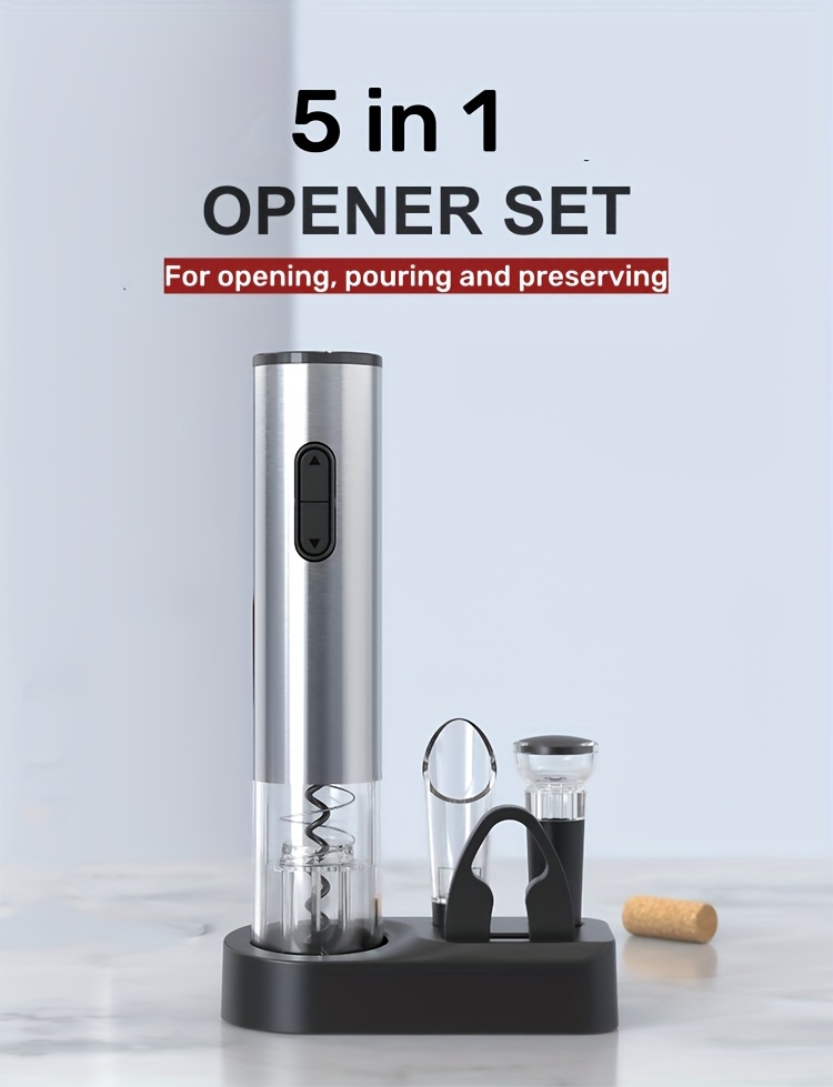 Набор электрических штопоров для вина 5-в-1 с красным винным аэратором и основанием для хранения
