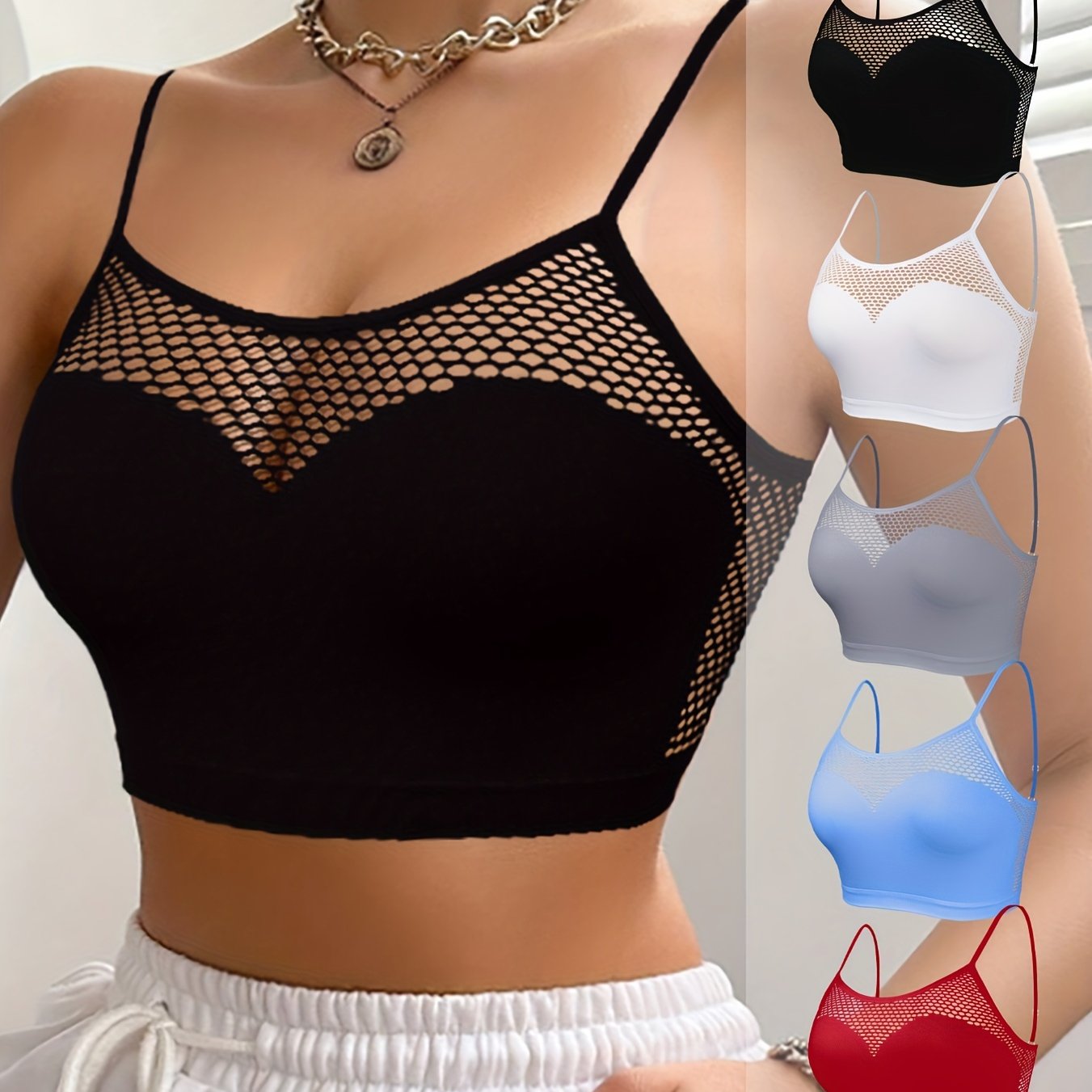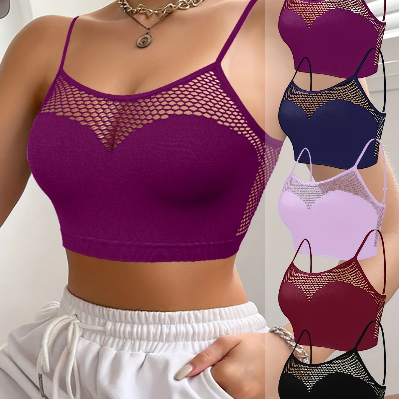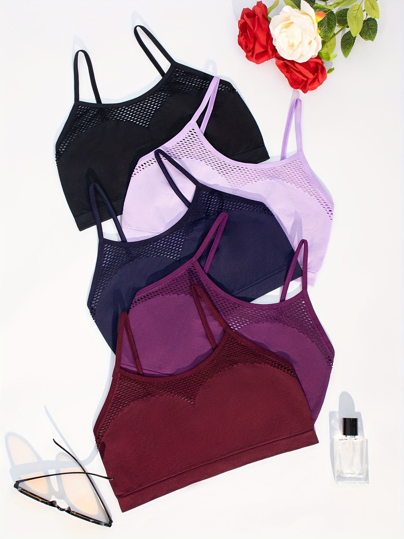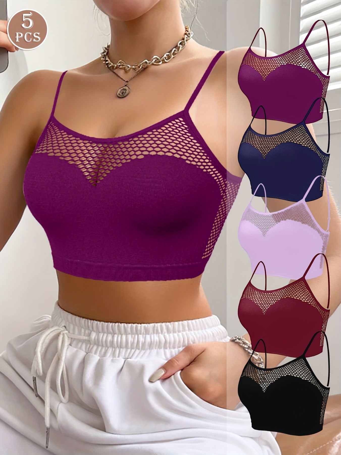 5-Pack сексуальных бюстгальтеров с вырезами, изготовленных из высокоподдерживающей трикотажной ткани (92% полиамид, 8% эластан), с дышащим бесшовным дизайном в стиле рыболовной сети без подкладки и проволок. Идеально подходит для женщин.