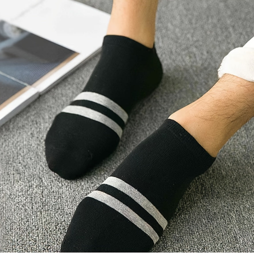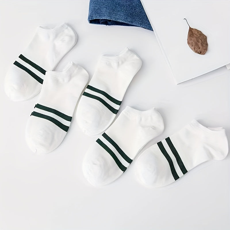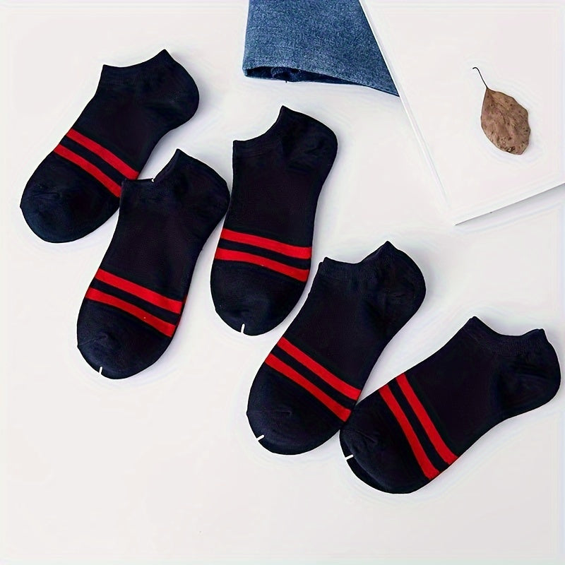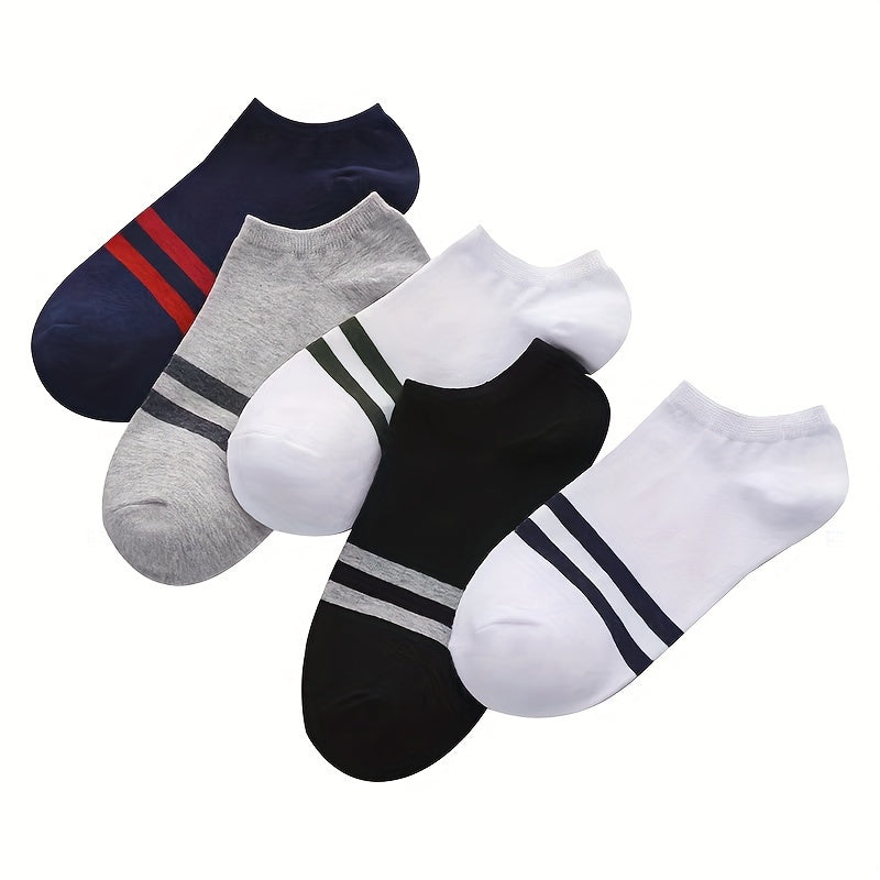 Мужской набор из 5 пар низких спортивных носков с дышащим, влаговыводящим, полосатым хлопком для лета