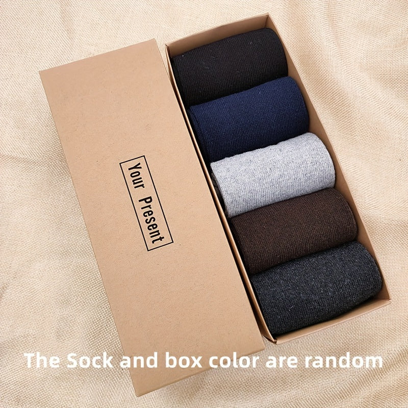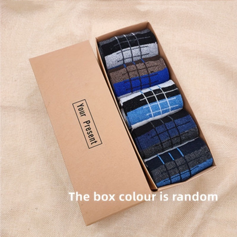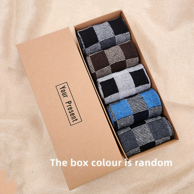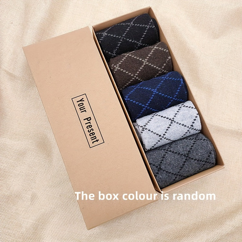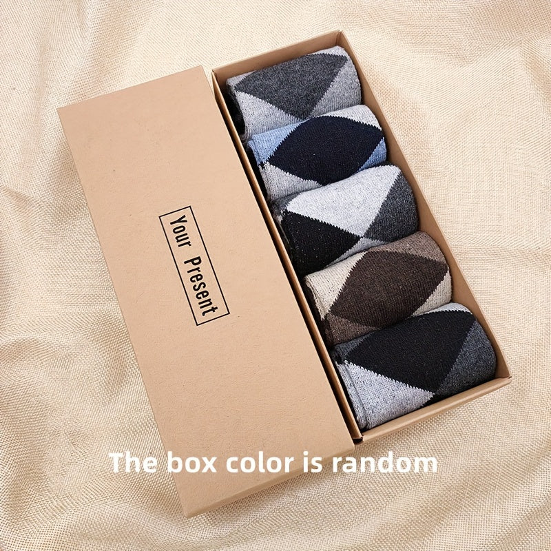 Мужские шерстяные носки, упаковка из 5 штук, геометрический узор, теплый осень-зима, подарочная коробка