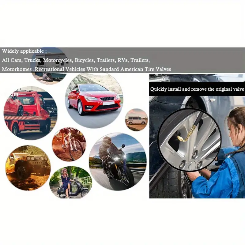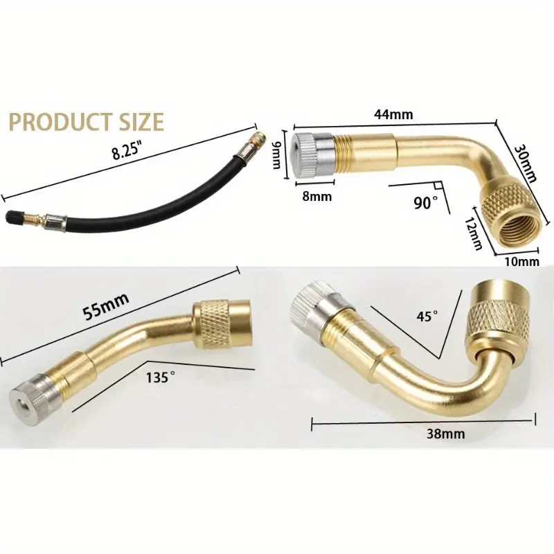 Набор из 5 удлинителей для вентилей шин с гибкими металлическими колпачками для воздуха