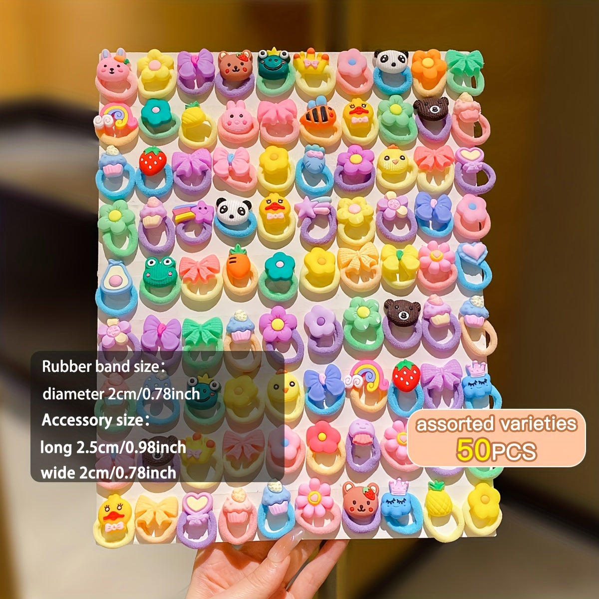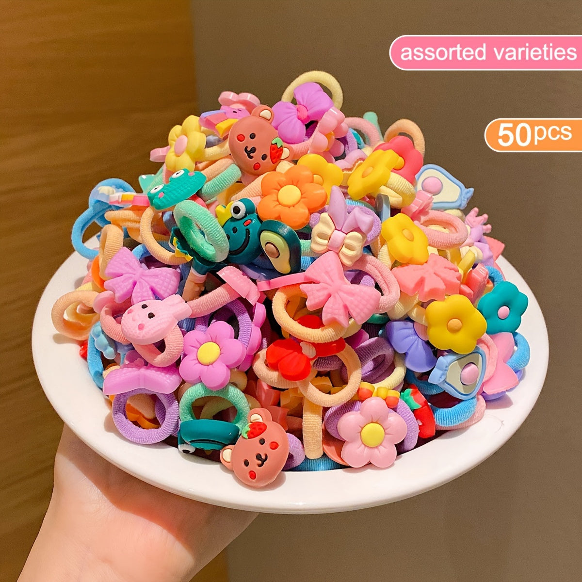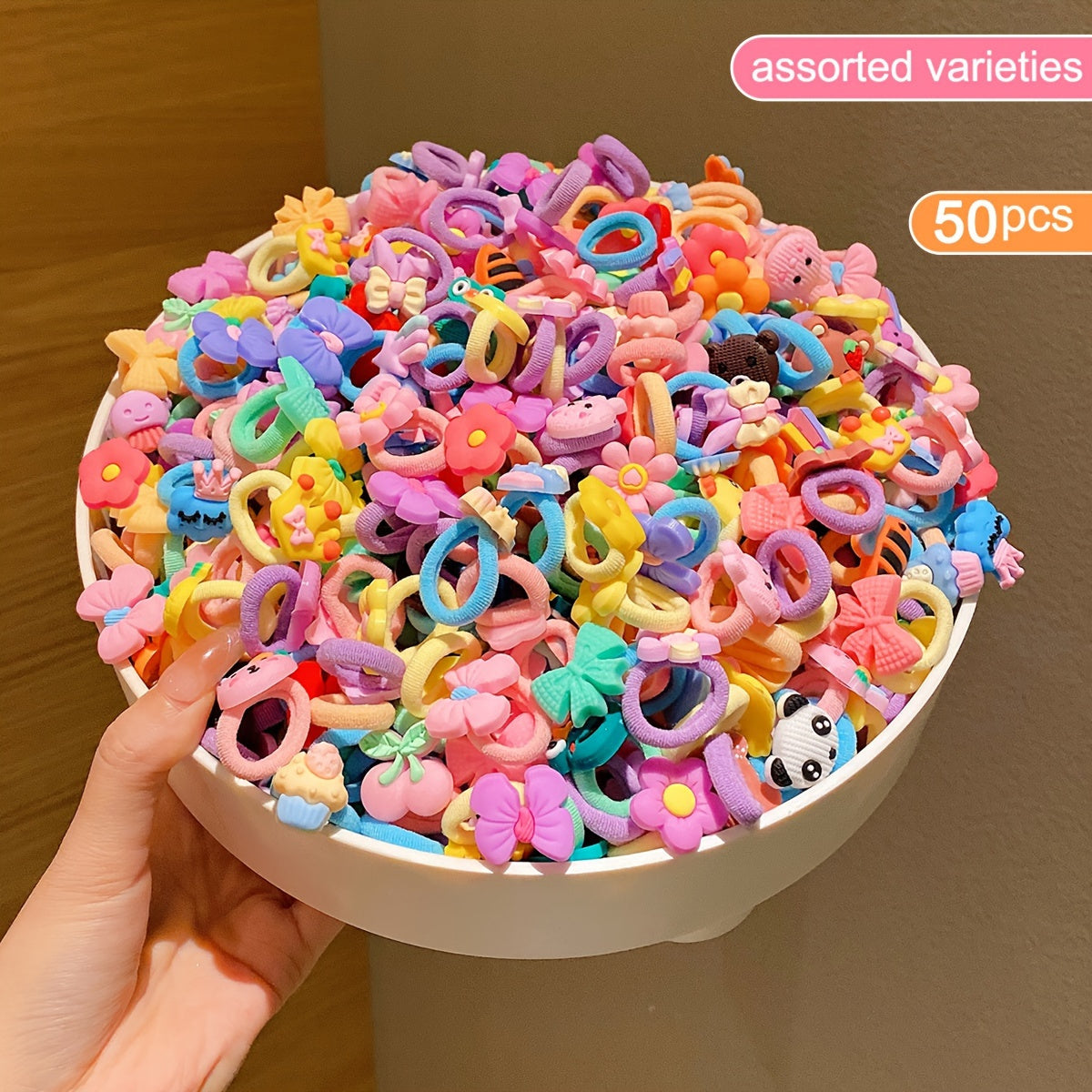 50 ярких мультяшных резинок для волос для девочек, праздничный набор из 50 штук