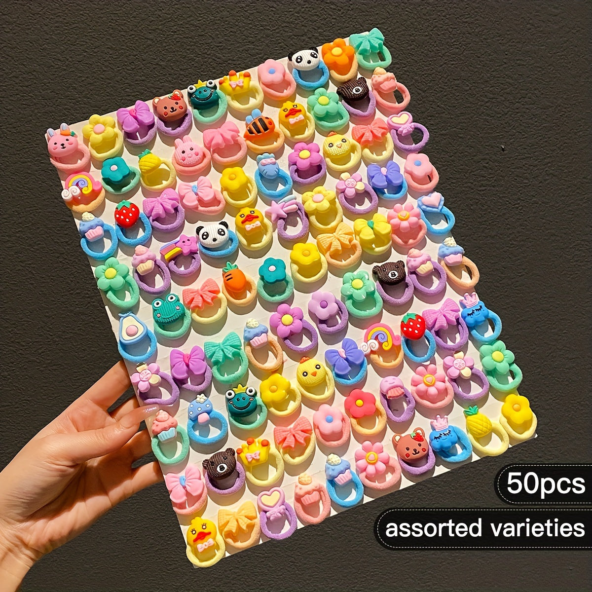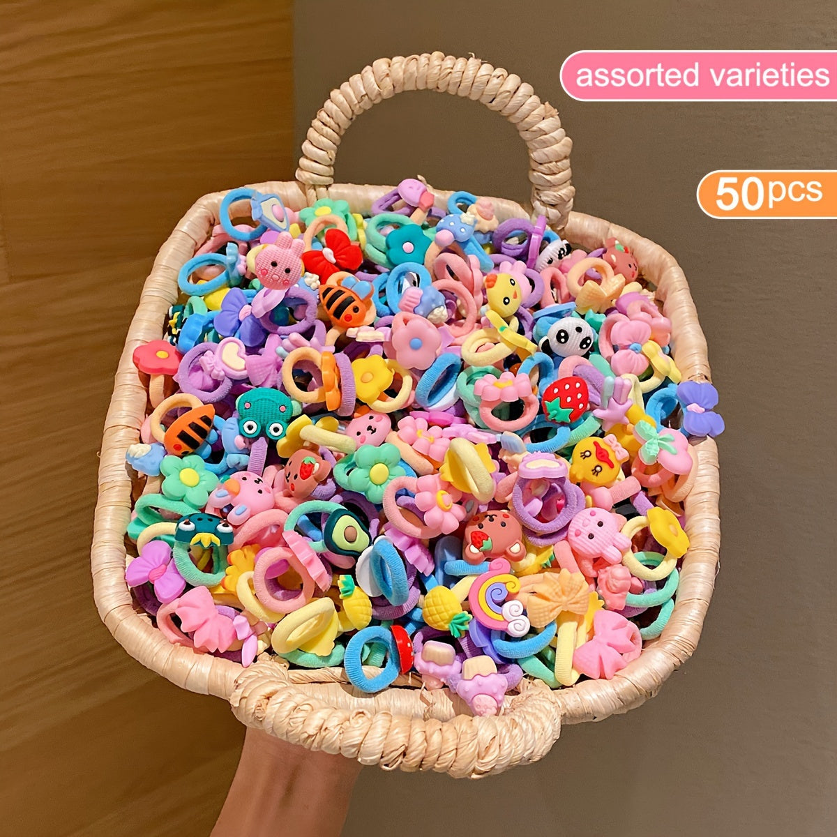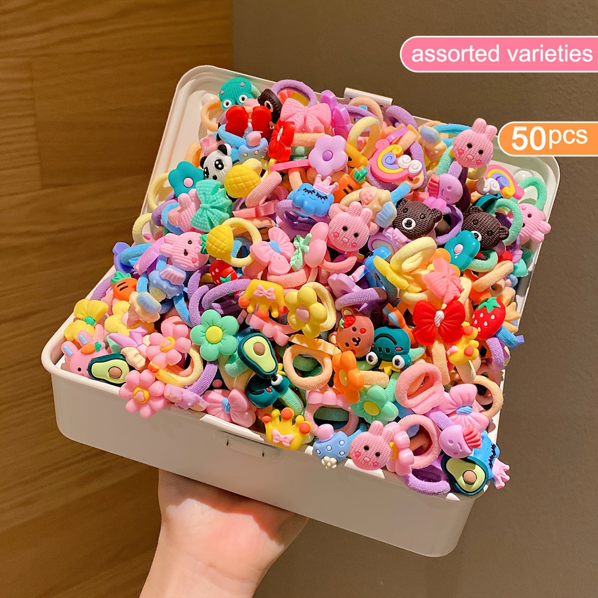 50 ярких мультяшных резинок для волос для девочек, праздничный набор из 50 штук
