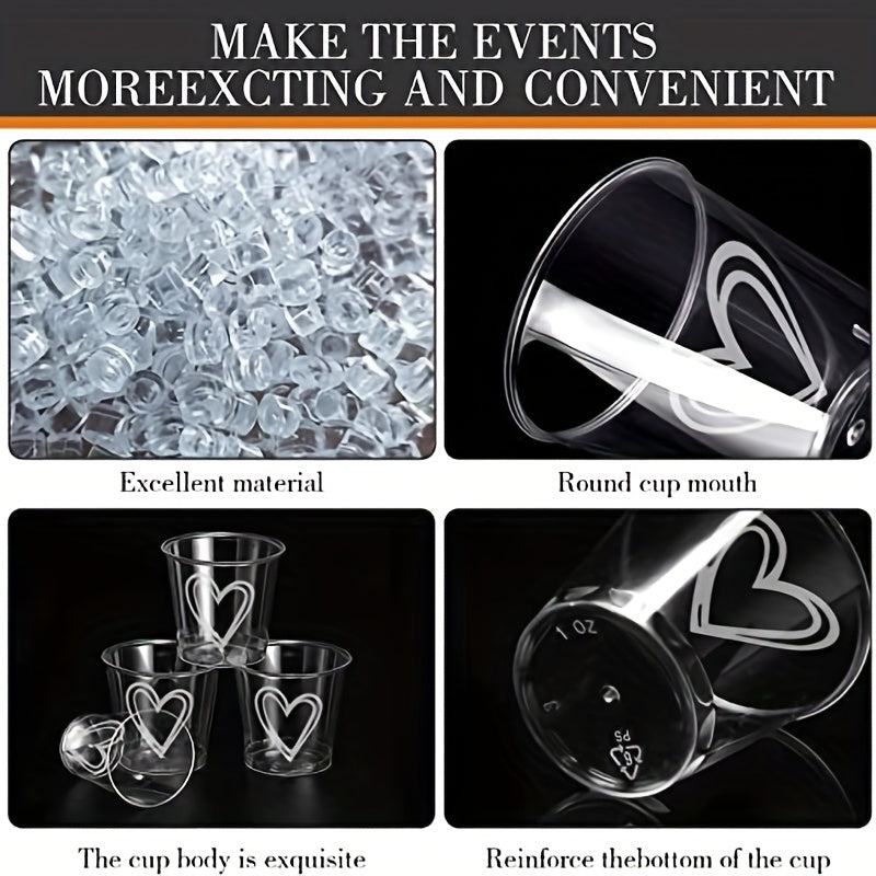50 или 100 элегантных пластиковых стаканов в форме сердца с крышками, идеально подходящих для свадеб и вечеринок. Перерабатываемые, без свинца и не бьющиеся, идеально подходят для подачи кофе, десертов и многого другого.
