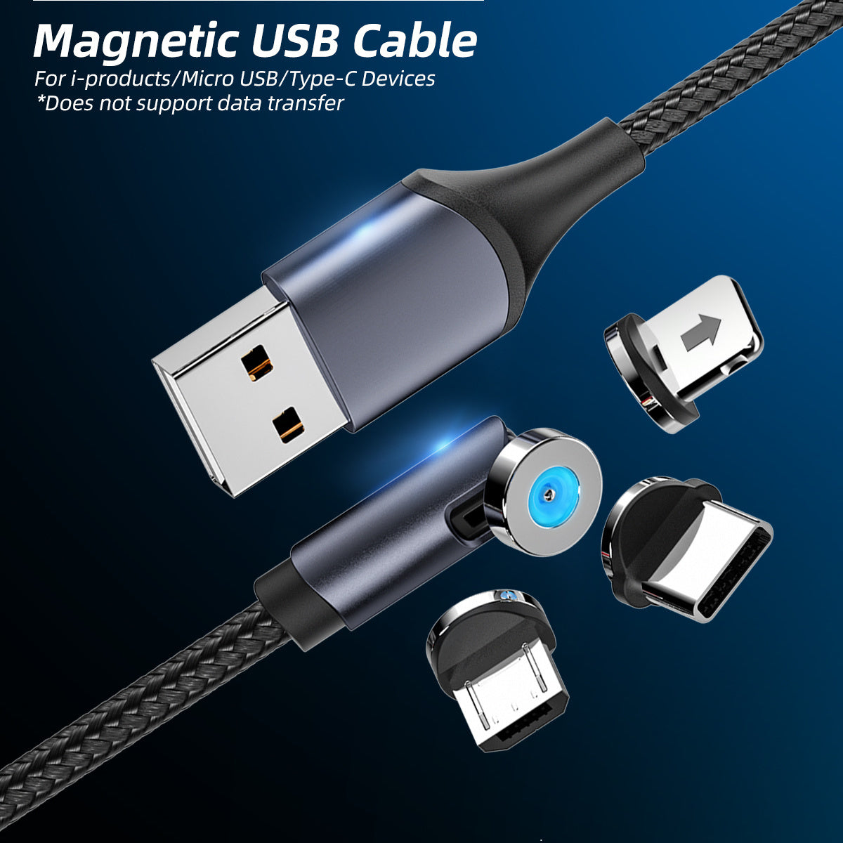 Кабель для быстрой зарядки с вращающимся магнитом на 540 градусов с разъемом Type C, Micro USB для Samsung, Xiaomi, iPhone