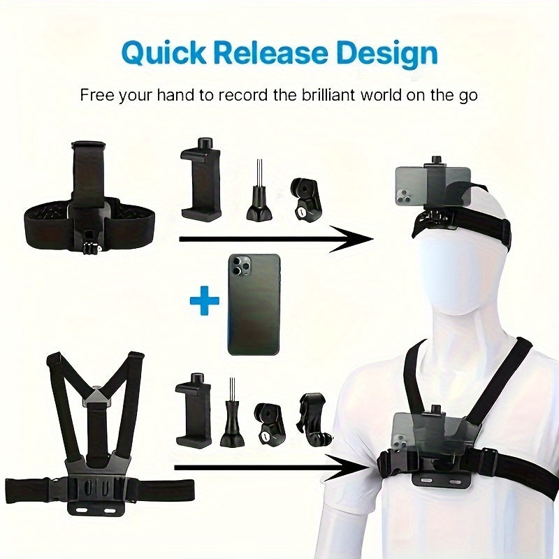 Набор креплений для спортивных камер из 6 предметов для телефона, GoPro, Osmo Action с нагрудными и головными ремнями