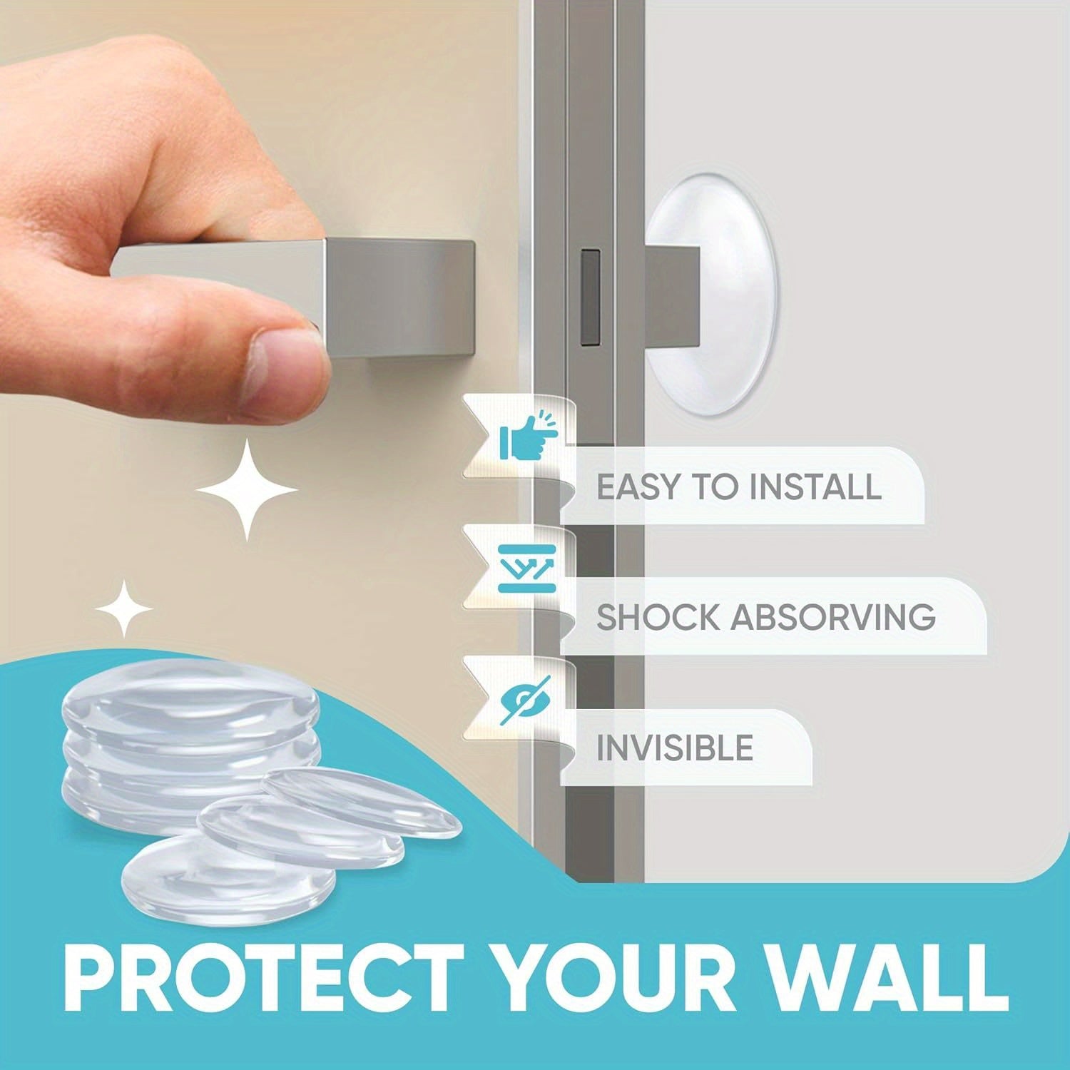 6 самоклеящихся защитников стен для дверей: прозрачные, амортизирующие удары, снижающие шум. Легко устанавливаются, многоразовые для дома и офиса.