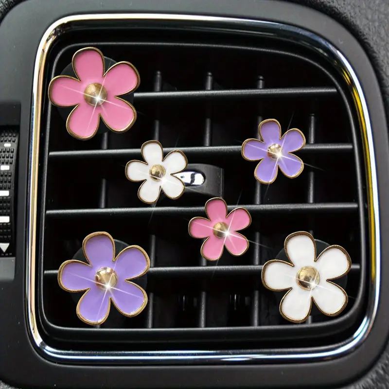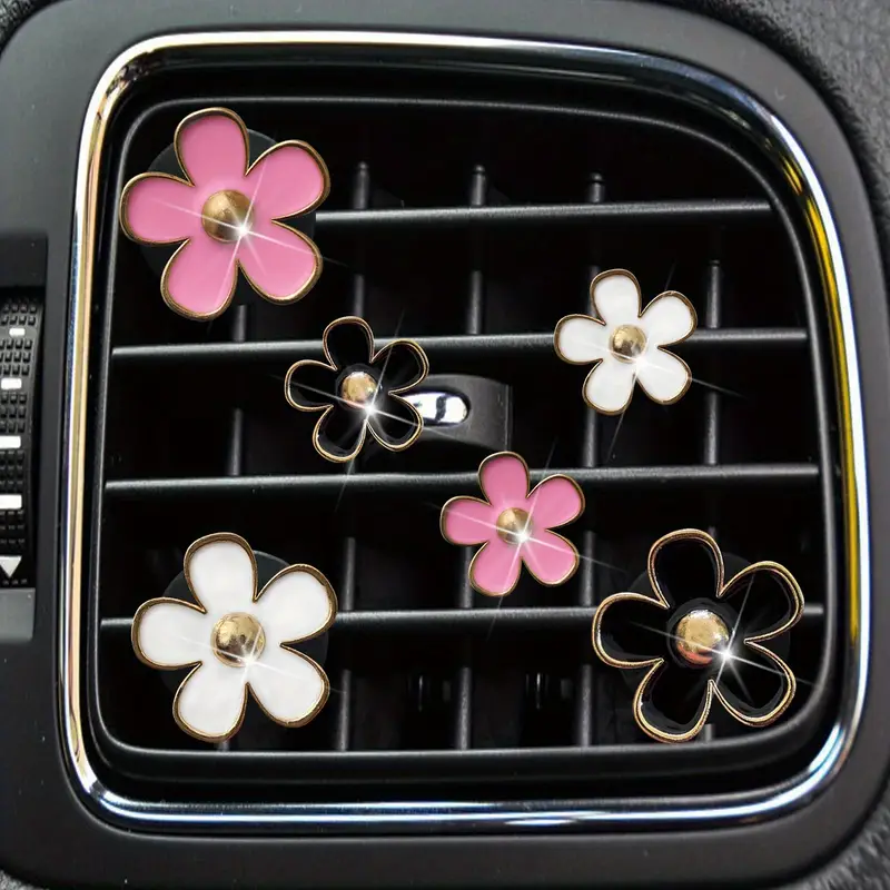 6 шт. розовых и белых лепестков ромашки, зажимы для автомобильных освежителей воздуха, украшение вентиляции, ароматизированные таблетки