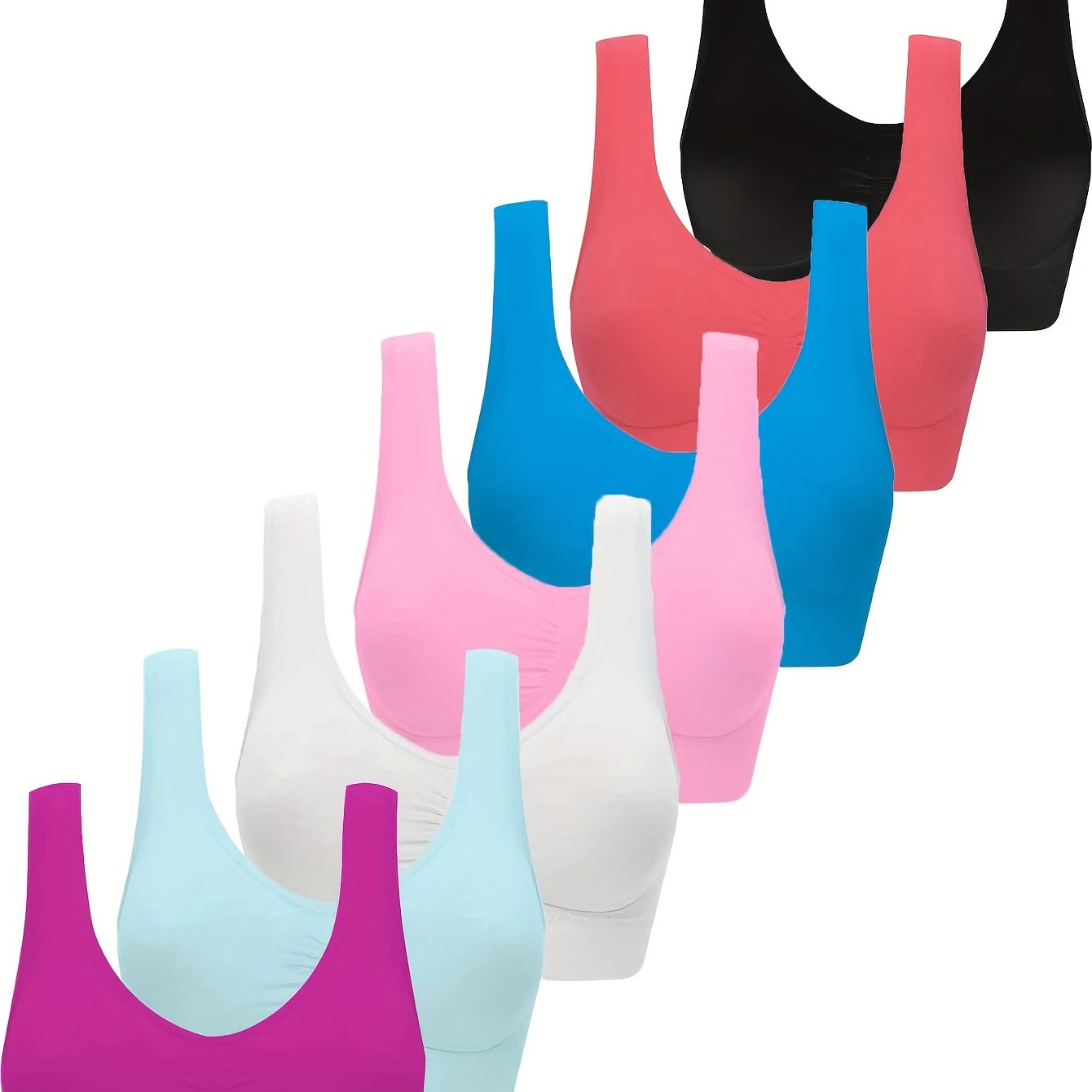 7 женских спортивных бюстгальтеров из бесшовной нейлоновой трикотажной ткани в однотонных цветах. Дышащий комплект топа-бюстгальтера для тренировок, состоящий из 92% нейлона и 8% эластана. Комплект взрослого спортивного нижнего белья с бюстгальтером и