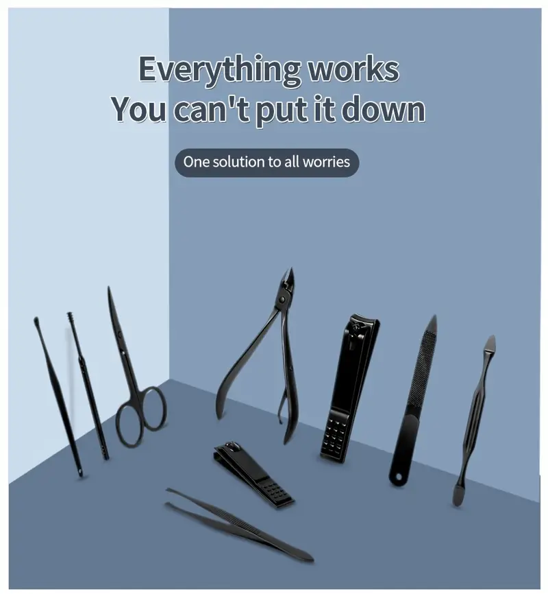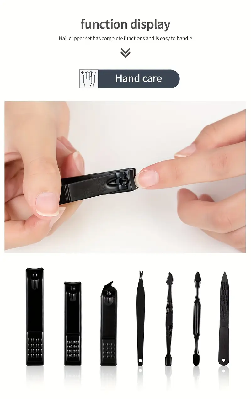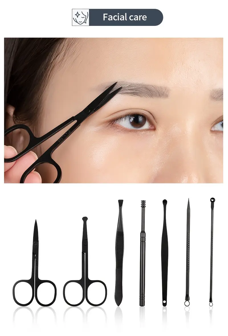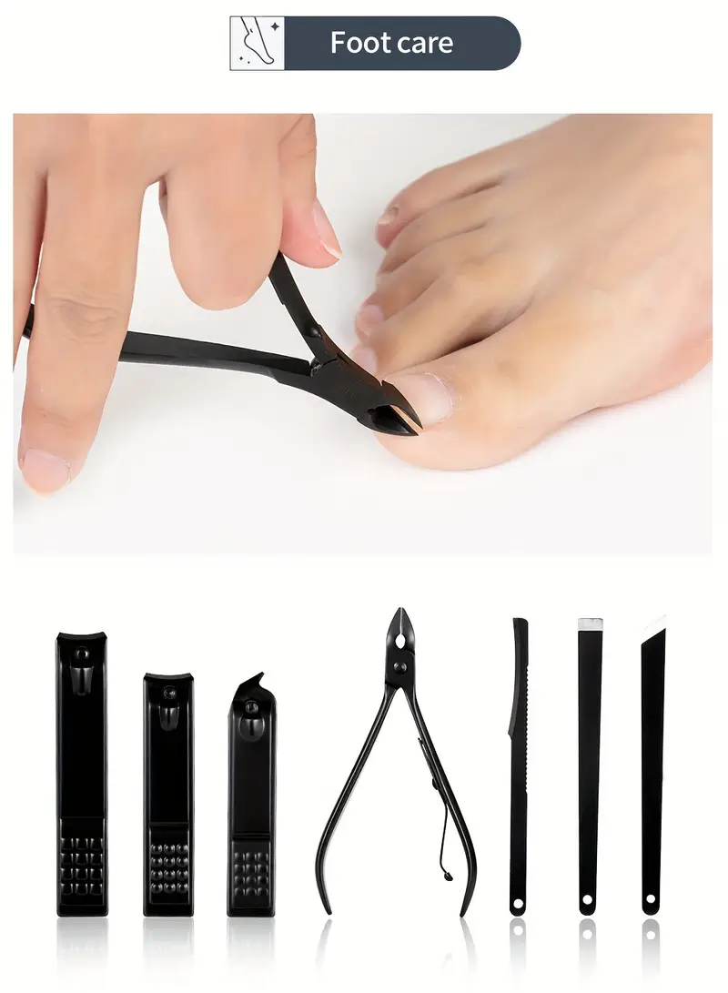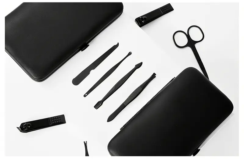 7 предметов мужской маникюрный набор из черной нержавеющей стали для рук, ног и лица