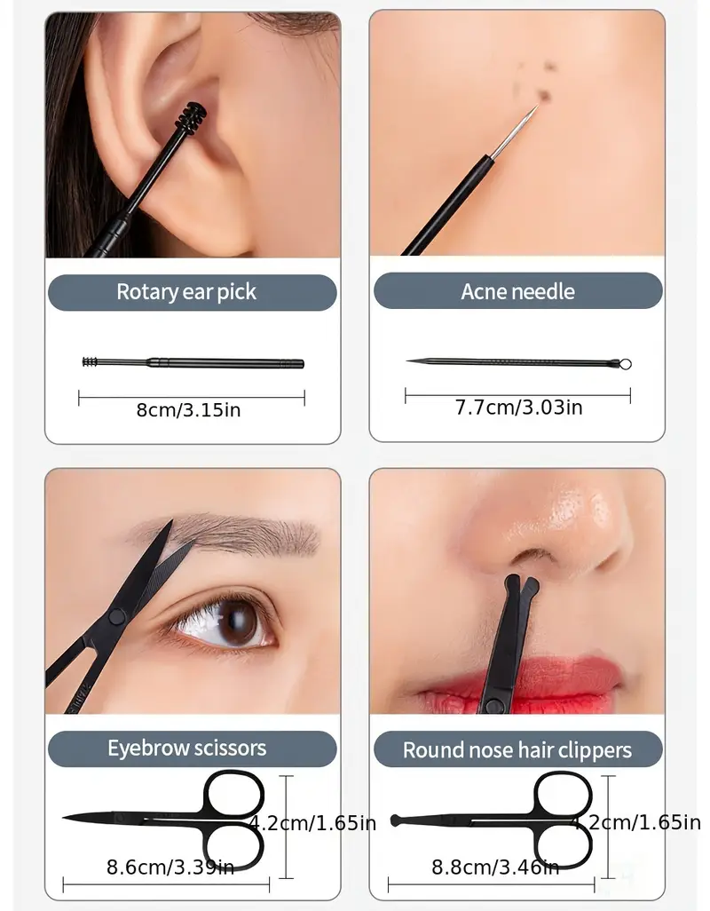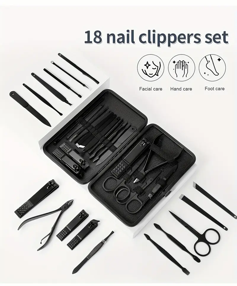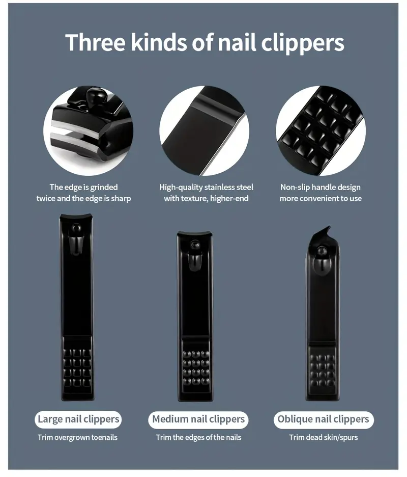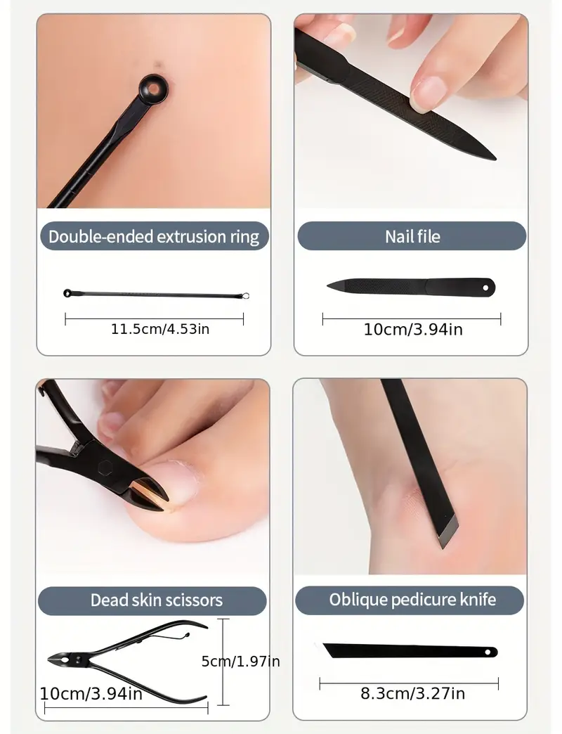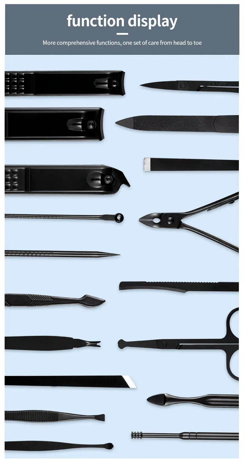 7 предметов мужской маникюрный набор из черной нержавеющей стали для рук, ног и лица