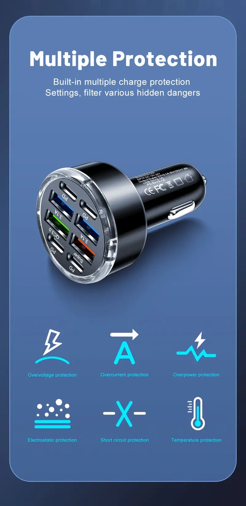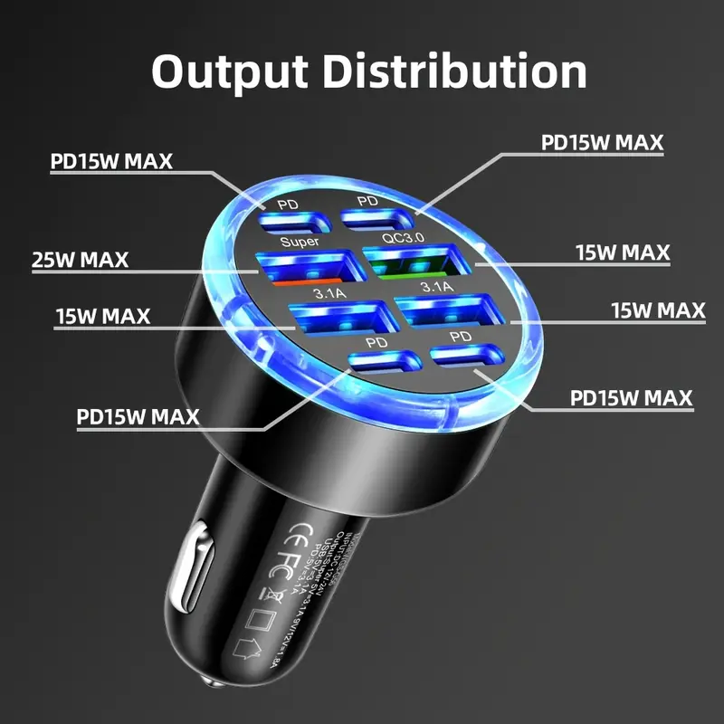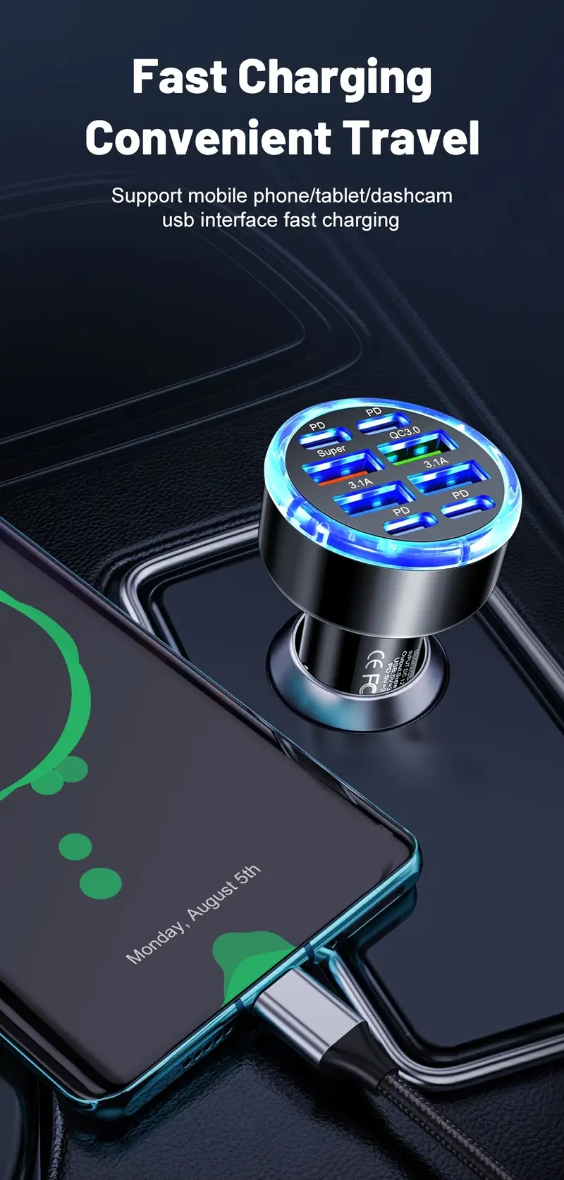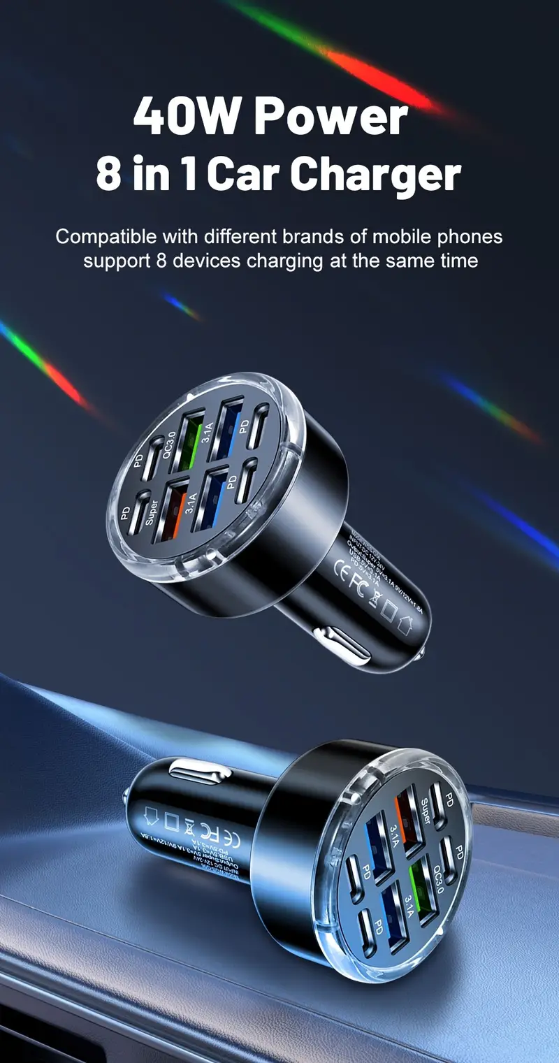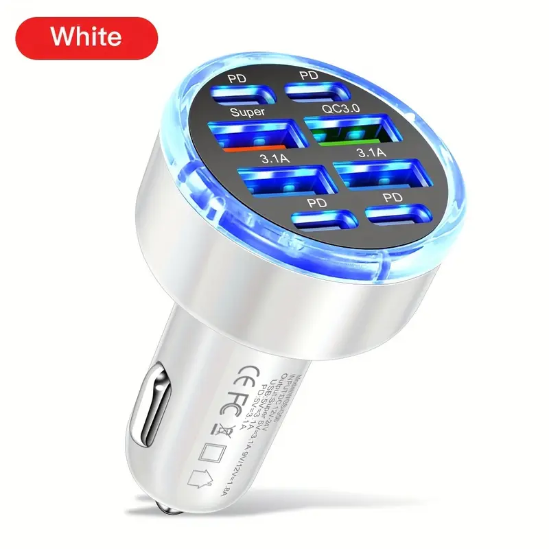 8-в-1 Быстрая зарядка для автомобиля с USB-разъемами для телефона и планшета