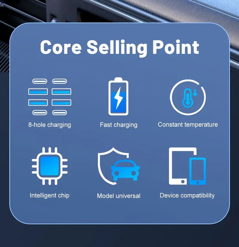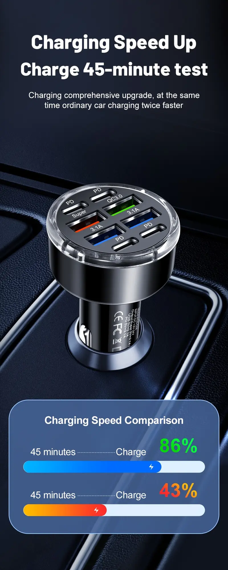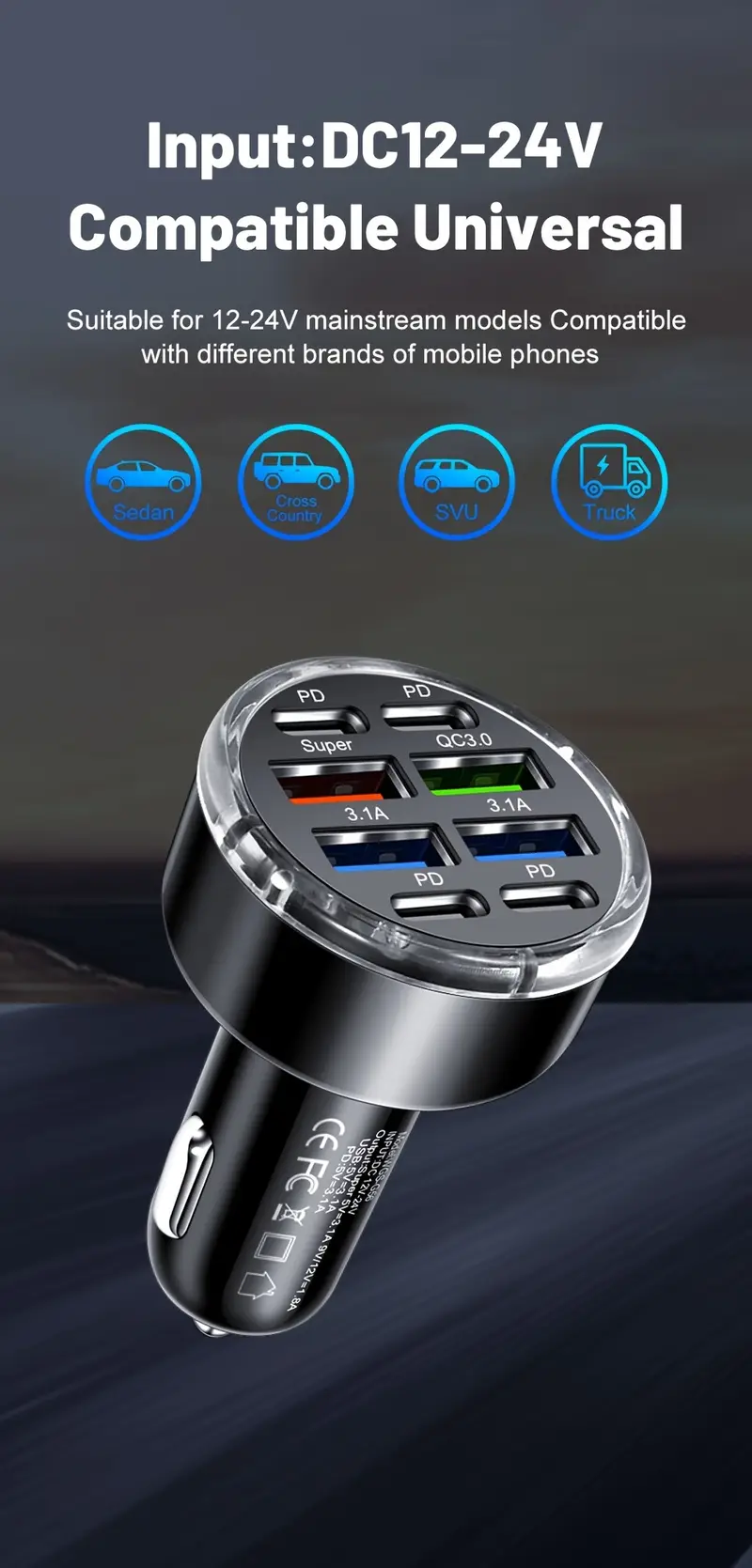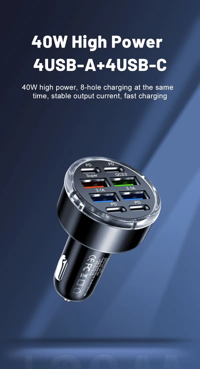 8-в-1 Быстрая зарядка для автомобиля с USB-разъемами для телефона и планшета