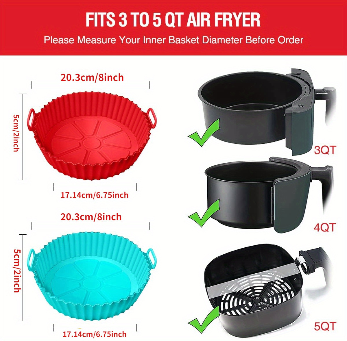 8-дюймовая силиконовая сковорода для аэрогриля с складным дизайном и высокотемпературным противнем для выпекания