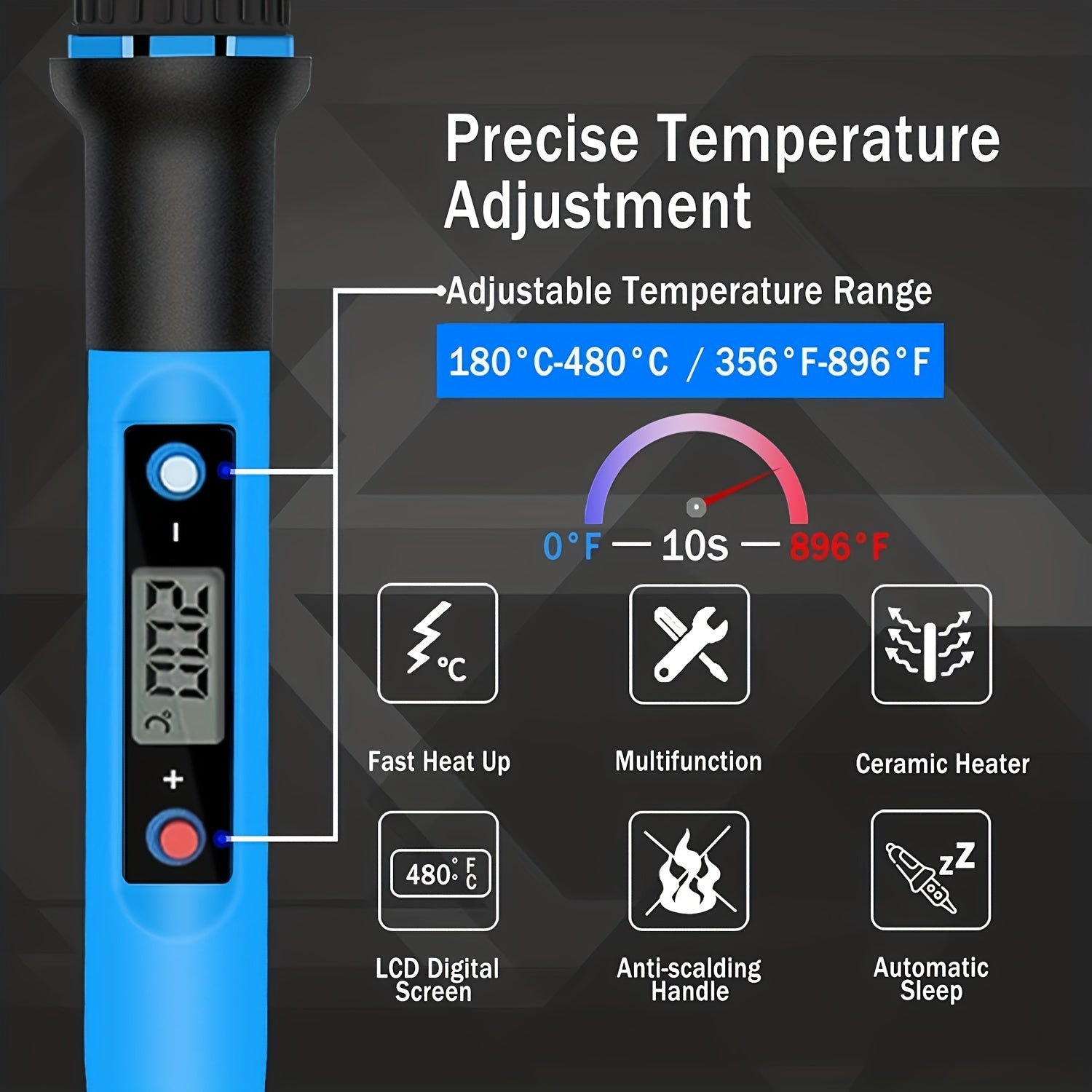 80W электрический паяльник с LED-дисплеем, регулируемой температурой, EU-вилкой, идеален для DIY-проектов, включает в себя припой, прецизионные насадки и набор для пайки.