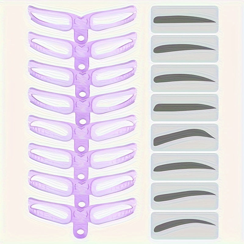 Набор из 8 многоразовых пластиковых трафаретов для бровей с рукояткой для точного ухода