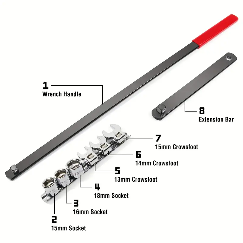 Набор из 8 универсальных ключей для ремня serpentine, инструмент для ремонта автомобильных двигателей