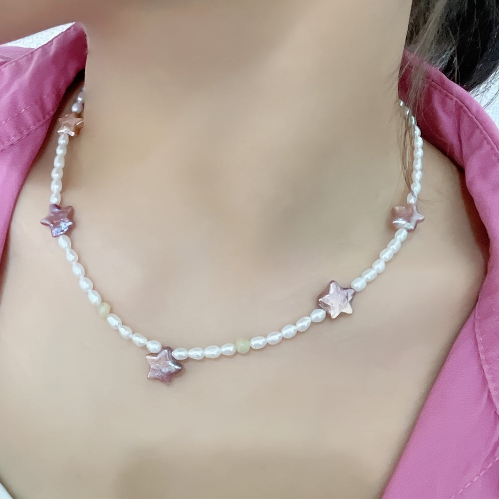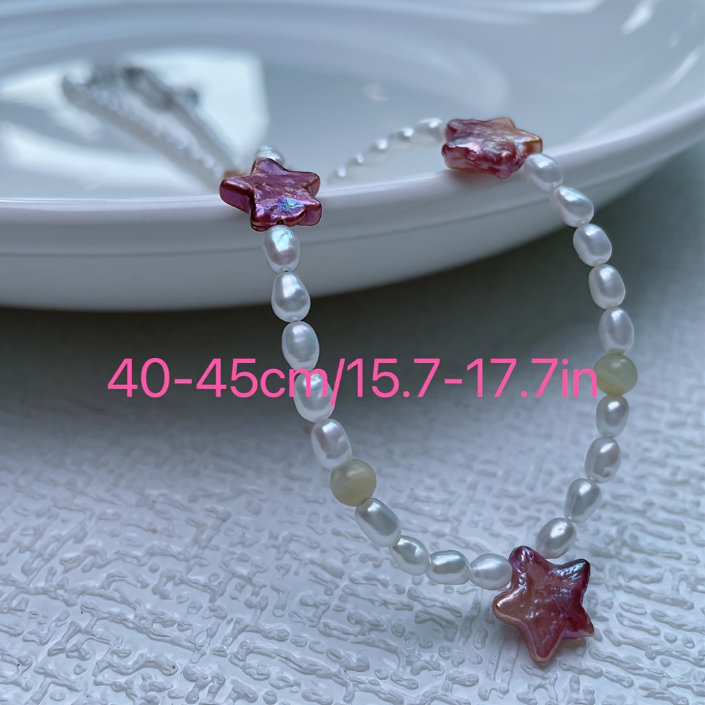 "Цепочка на ключицу из 925-й стерлинговой серебра с фиолетовым барочным звездным кулоном и богемным ожерельем из пресноводных жемчужин - идеально подходит в качестве подарка на День святого Валентина и для повседневных нарядов, с маленькими жемчужинами"