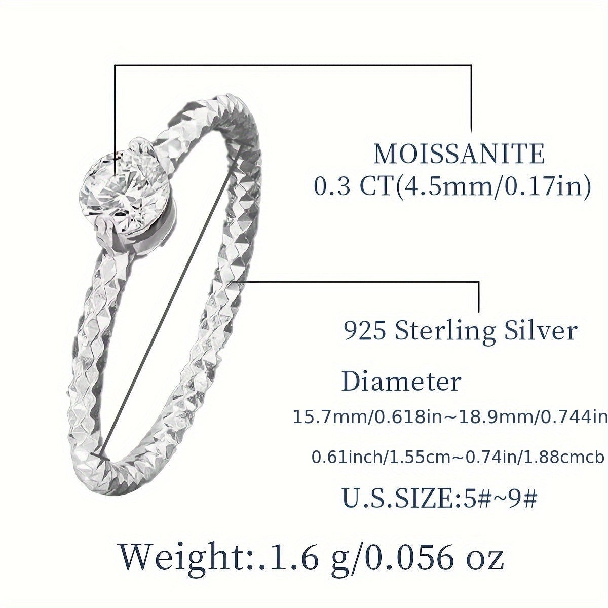 Обручальное кольцо из стерлингового серебра с моссанитом и дизайном «соты» с сертификатом