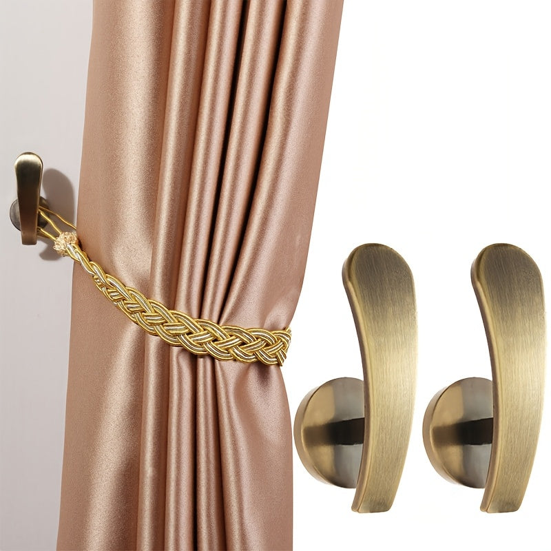 Пара настенных крючков для штор с шурупами, идеально подходящих для подвешивания красивых золотистых штор, в комплекте с набором декоративных держателей для штор.