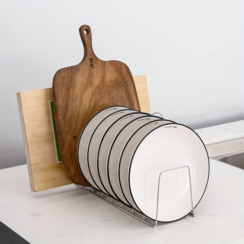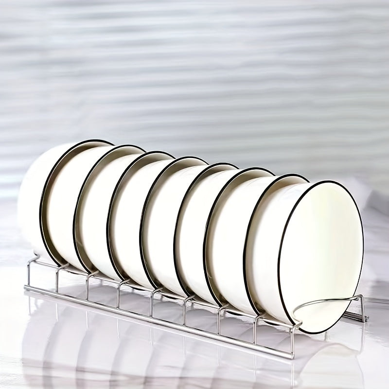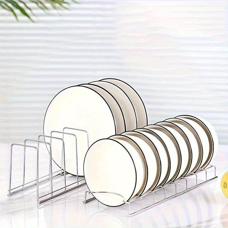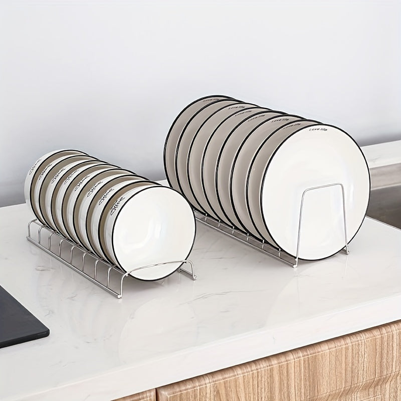 Органайзер из нержавеющей стали для хранения мисок и тарелок, оснащенный подставкой для сушки посуды, идеально подходит для организации хранения кухонных принадлежностей.