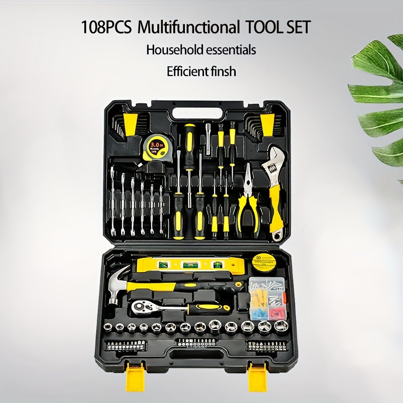 Набор инструментов для ремонта дома с 108 инструментами для домашнего ремонта и автомобильных ремонтов черный и желтый