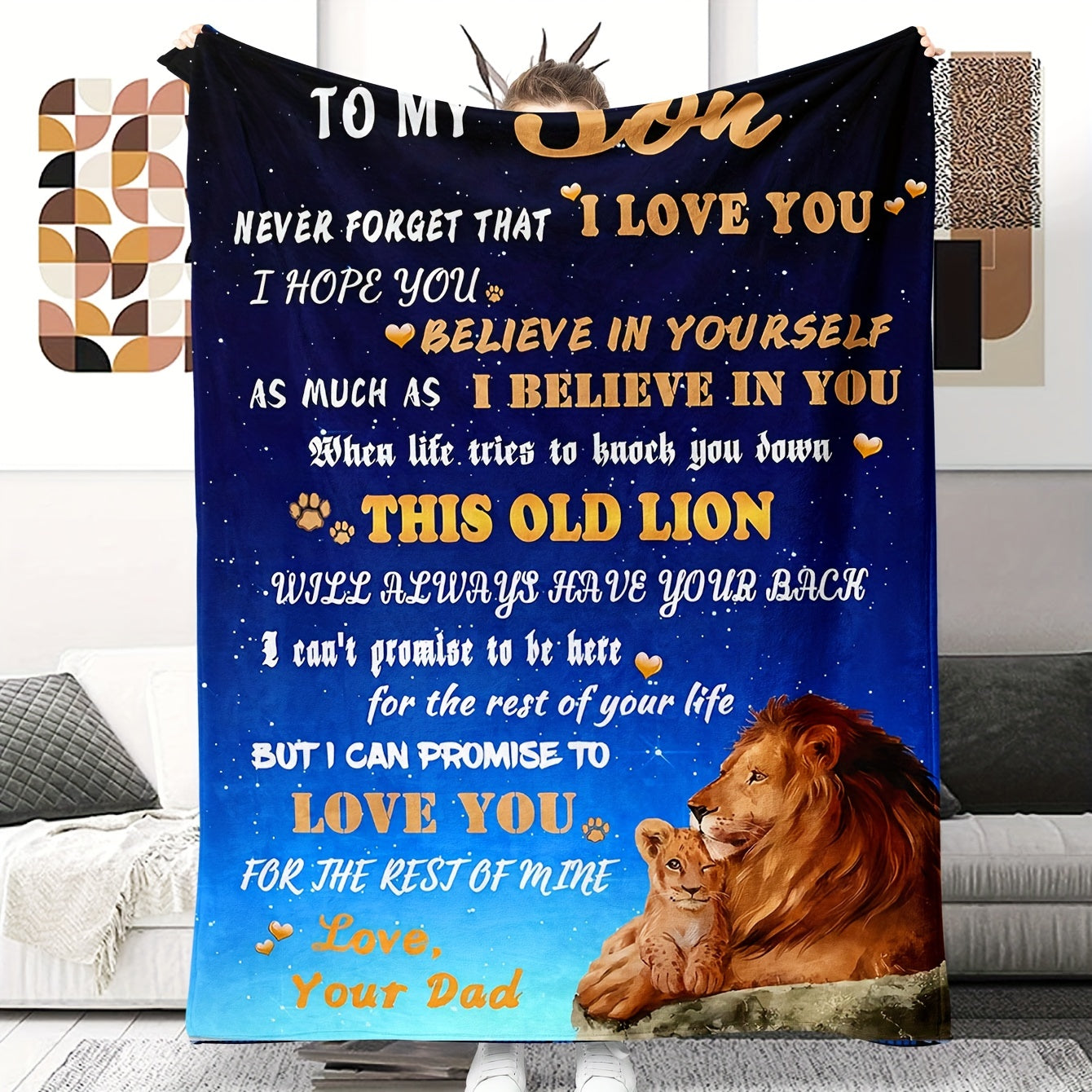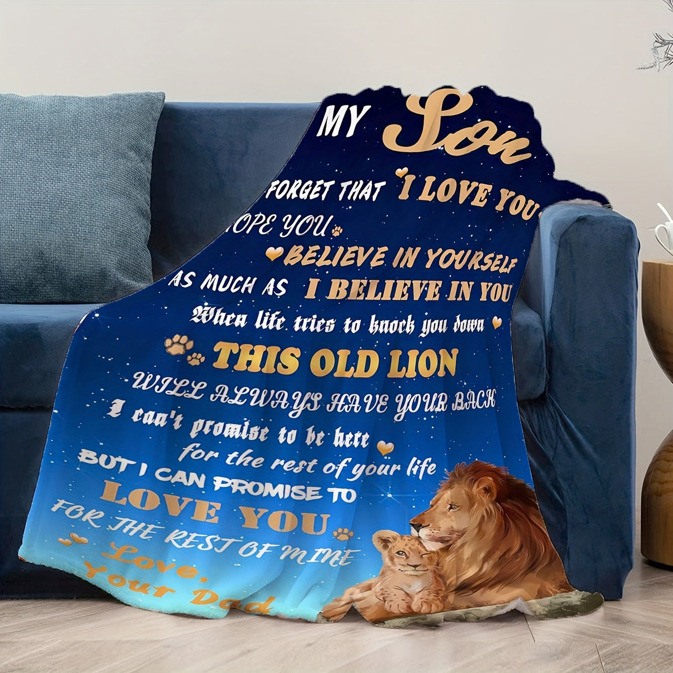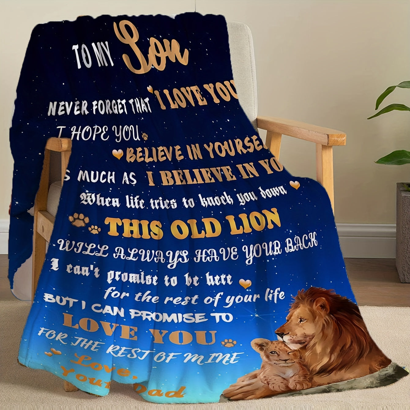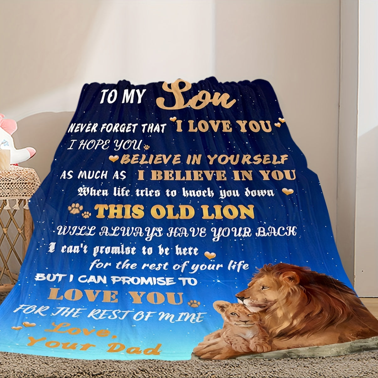 Теплое и уютное фланелевое одеяло с трогательным посланием от папы к сыну. Идеально подходит для уютного времяпрепровождения на диване, в кровати или во время походов. Отличный подарок на день рождения для любого случая.