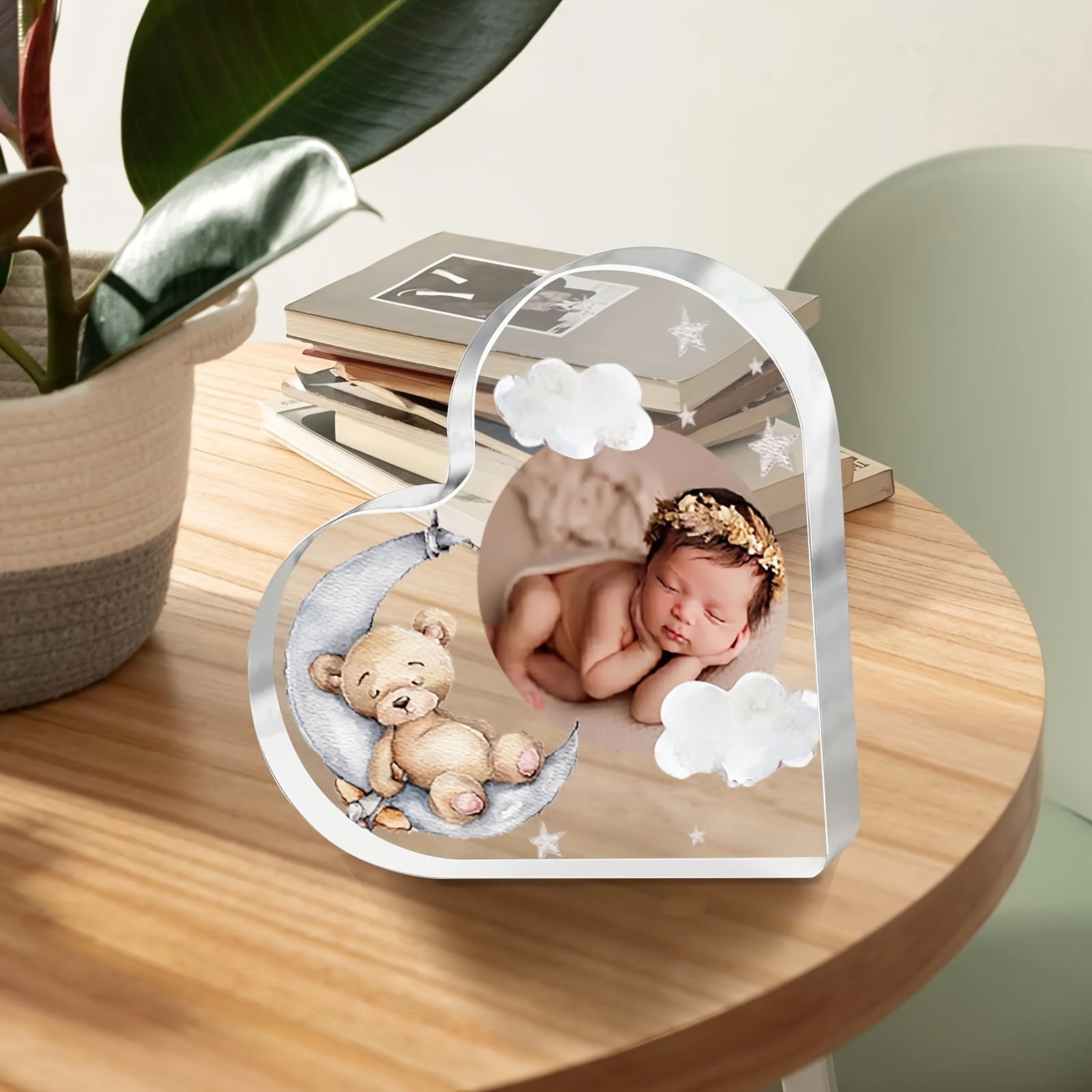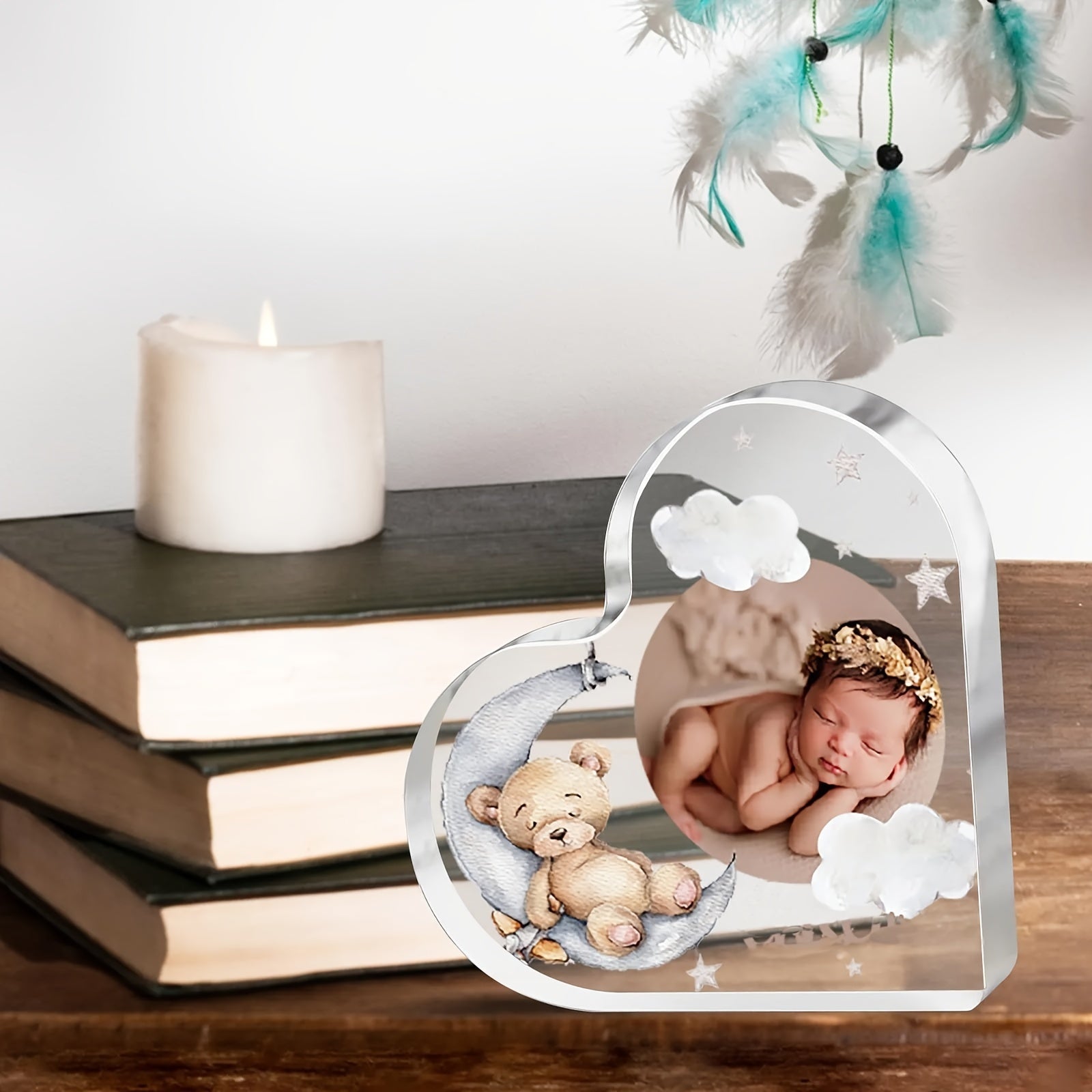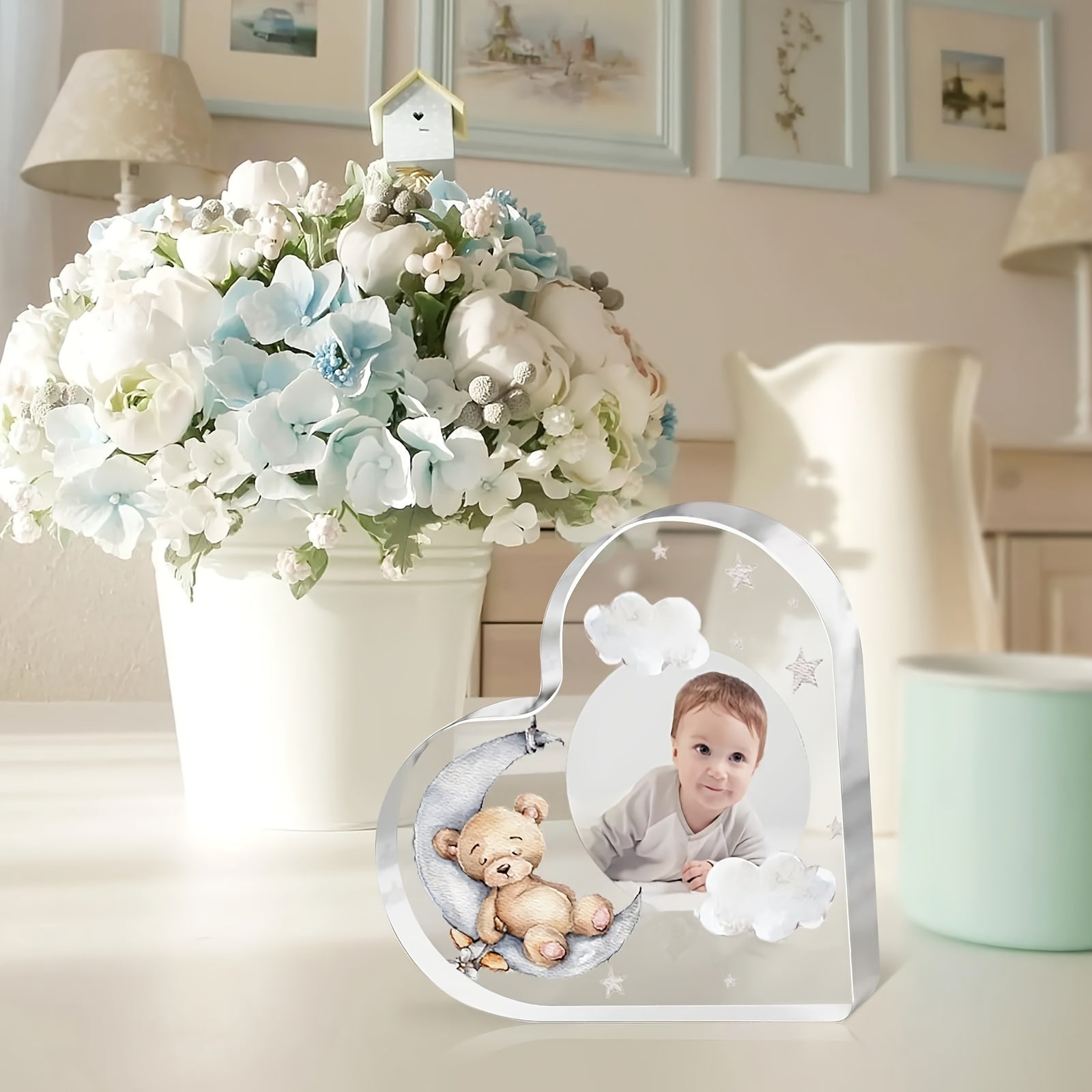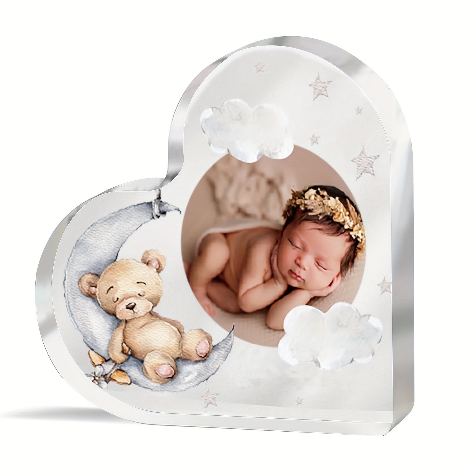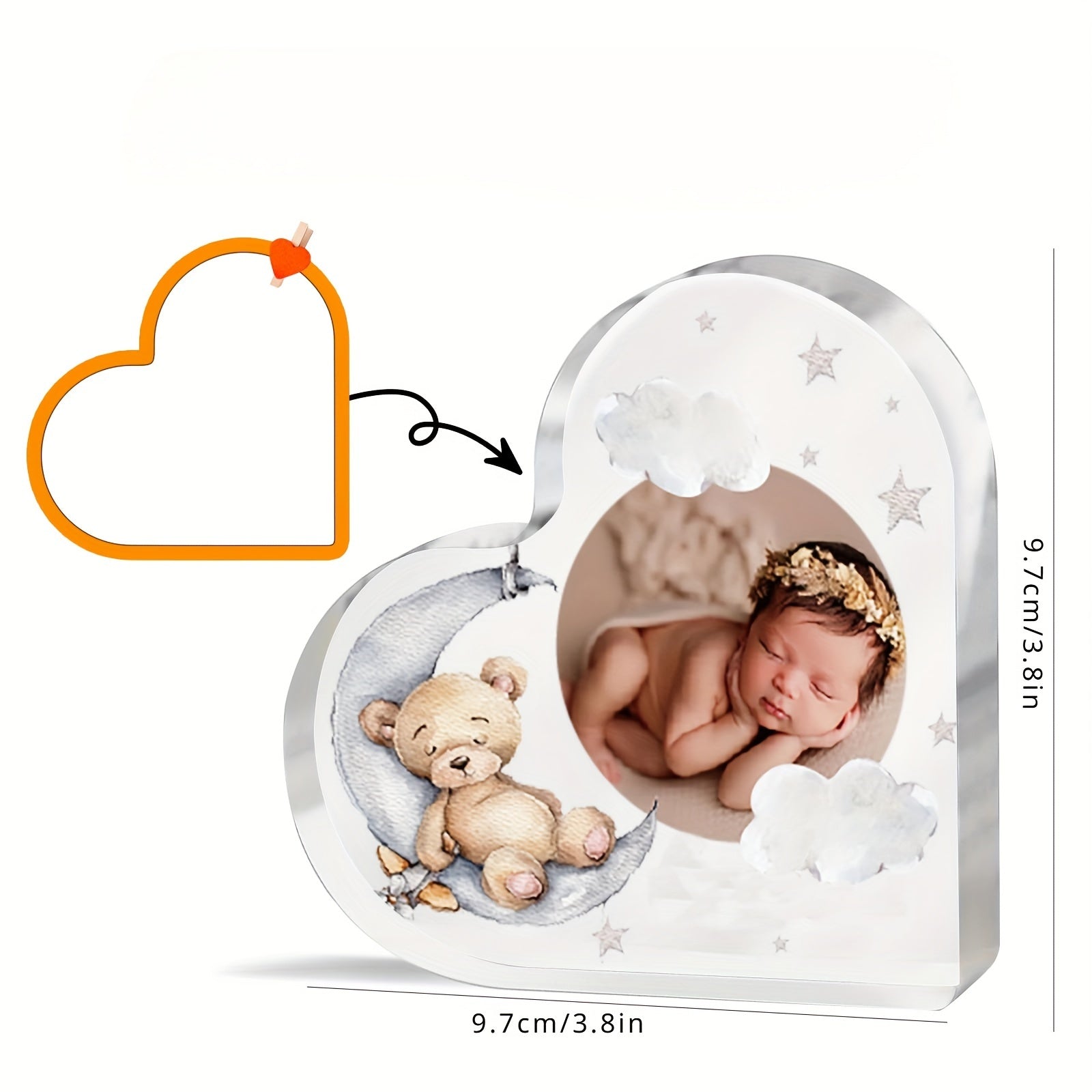 Добавьте индивидуальность в комнату вашего ребенка с помощью индивидуальной акриловой плакетки в форме сердца с милым дизайном медвежонка. Этот персонализированный фотосигнальный знак любви станет отличным памятным подарком для вашего сына или дочери.