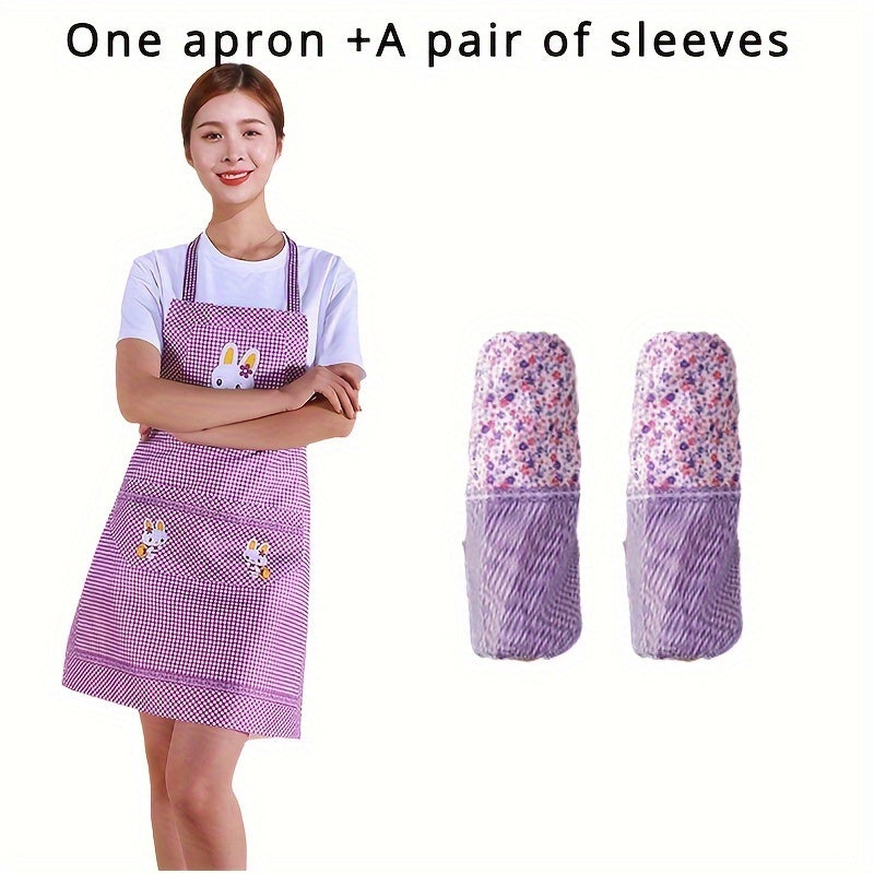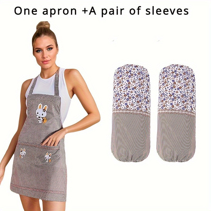 Регулируемый кулинарный фартук с милым дизайном кролика и карманами. Устойчив к маслу и грязи с коричневым клетчатым узором. Идеально подходит для поваров, выпечки, садоводства и использования на улице.