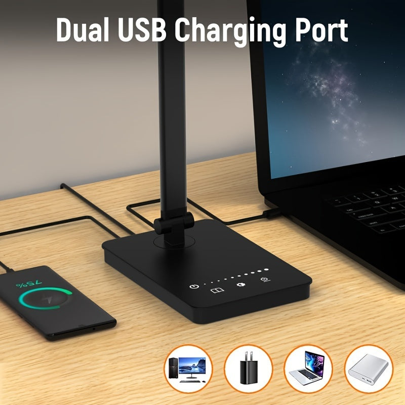Регулируемая двухрычажная настольная лампа LED с сенсорным управлением, заботящаяся о зрении, яркий свет, питание через USB, черная