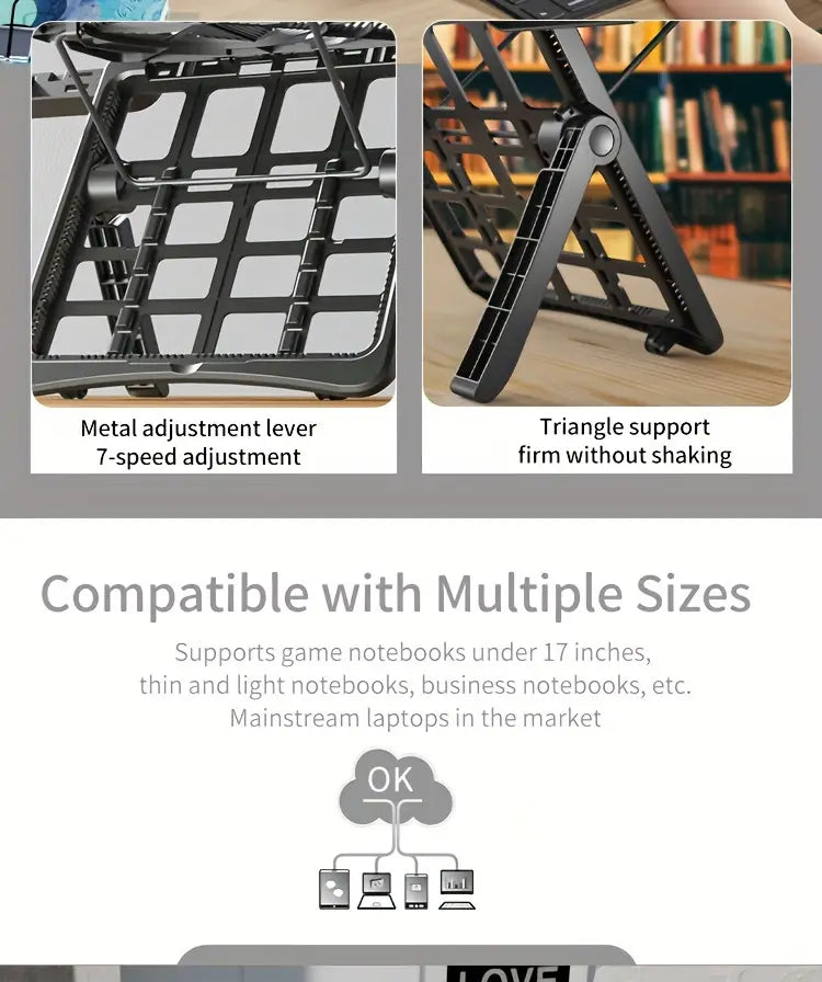 Регулируемая подставка для ноутбуков 43,94 см с держателем для телефона, эргономичная, из ABS и металлической рамы