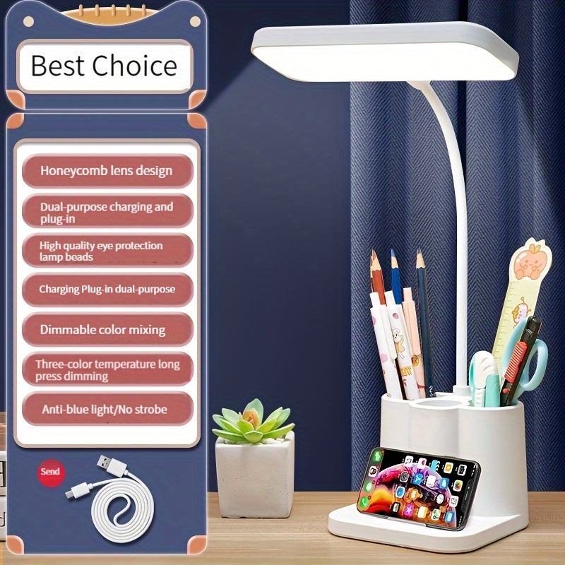 Регулируемая светодиодная настольная лампа с сенсорным управлением, технологией защиты глаз, перезаряжаемой батареей, идеальна для спальни или учебы.