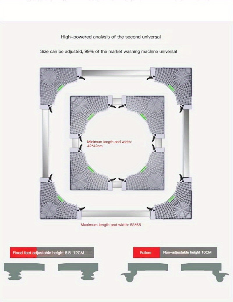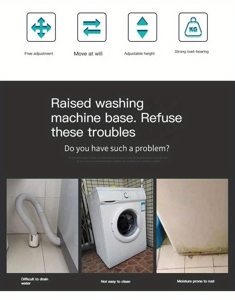 Регулируемая мобильная стойка для бытовых приборов для стиральных машин, сушилок и холодильников из нержавеющей стали