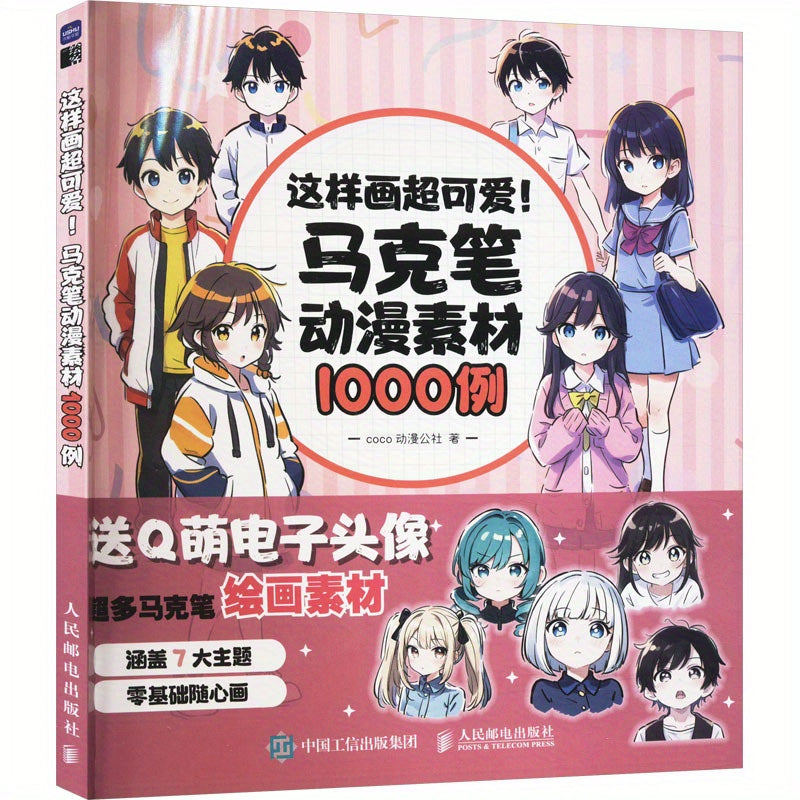 Очаровательный рисунок, выполненный с использованием 1000 маркерных аниме материалов, китайская версия.