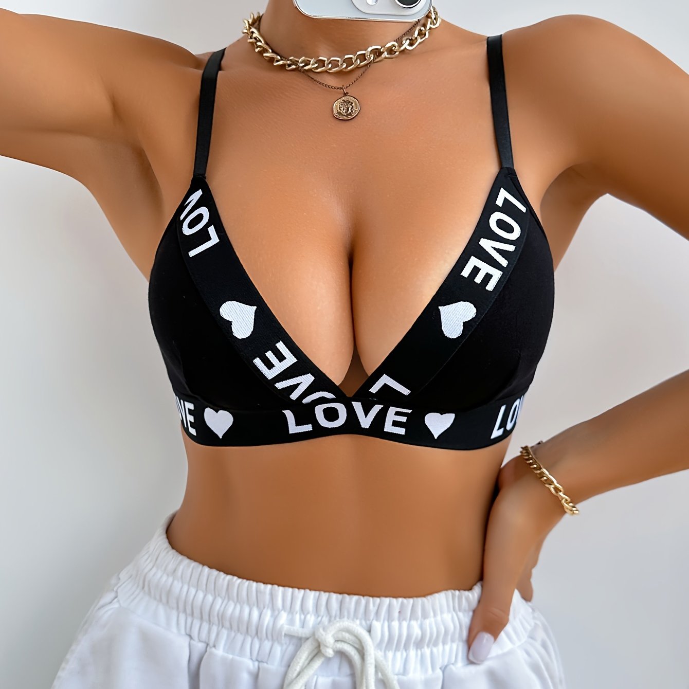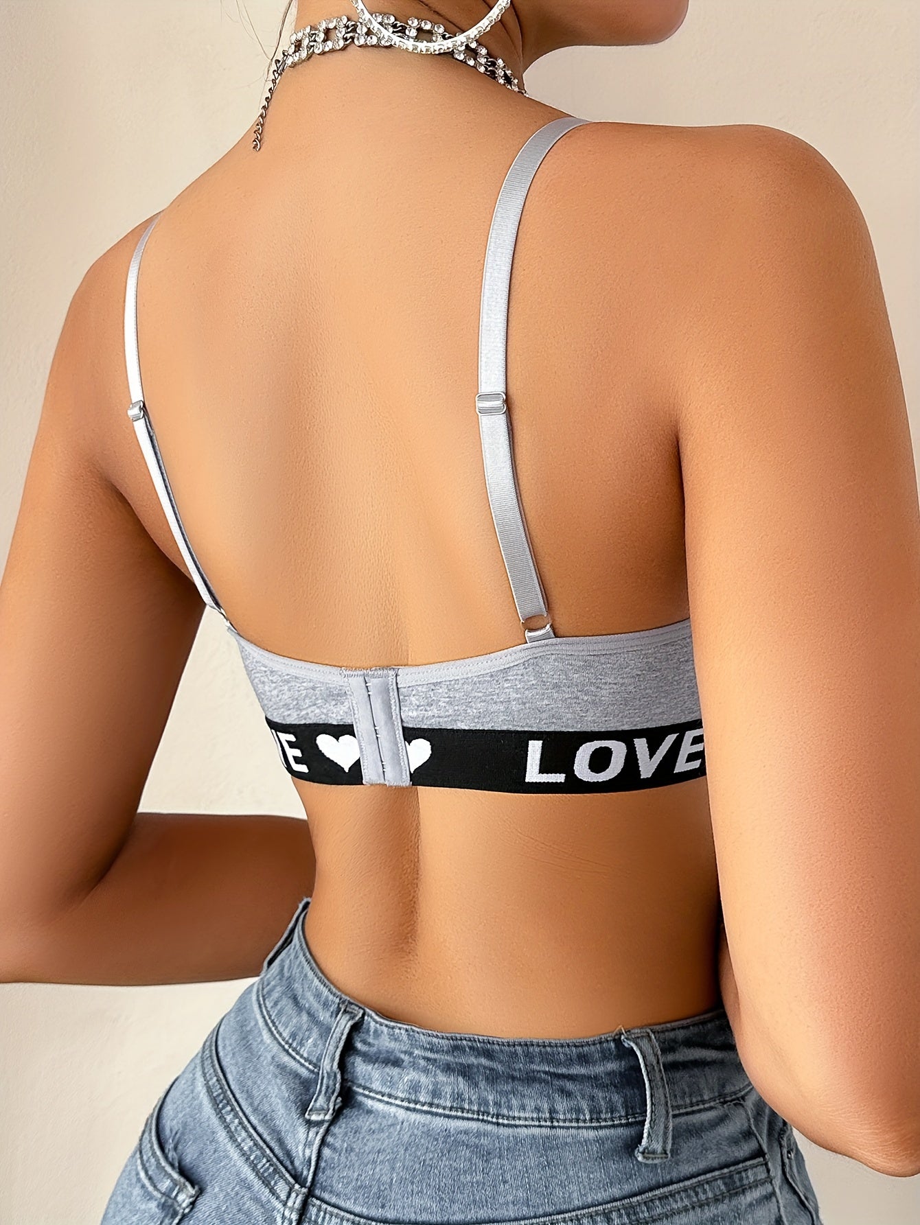 Взрослый повседневный бюстгальтер с сексуальным дизайном панелей с алфавитом, изготовленный из полиэстера и эластана, без косточек и без подкладки, с легкой поддержкой.