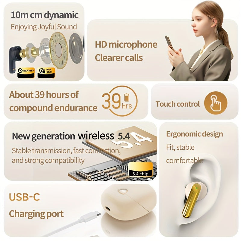 Aigo 5.4 Беспроводные наушники с микрофоном, TWS Спортивные наушники, LED Дисплей, Идеальный подарок