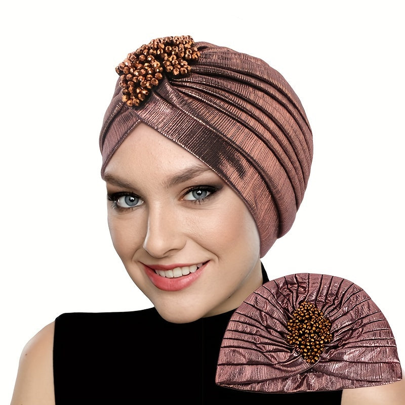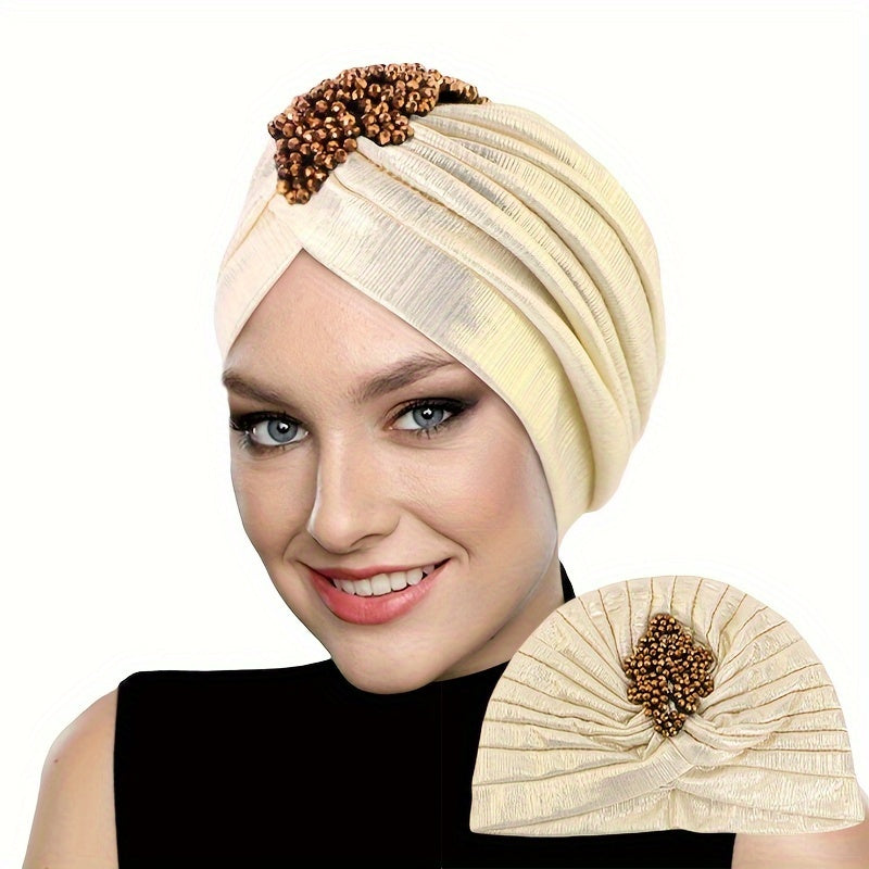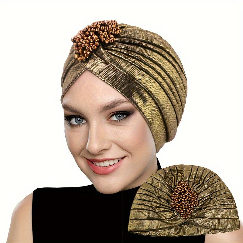 Элегантный золотой головной убор с винтажными складками и алмазовидными украшениями, тиснённые индийские и арабские этнические шляпы