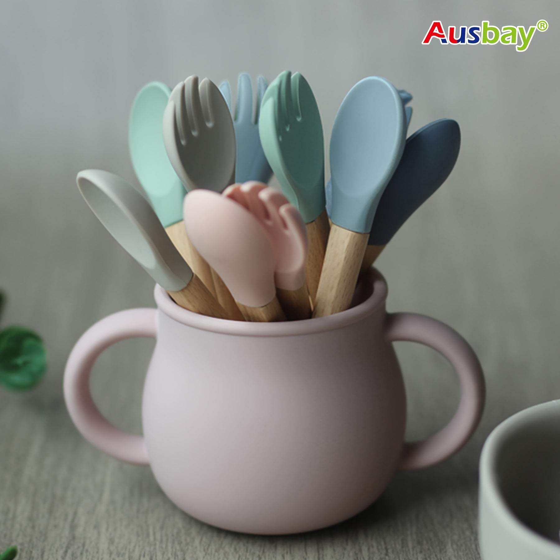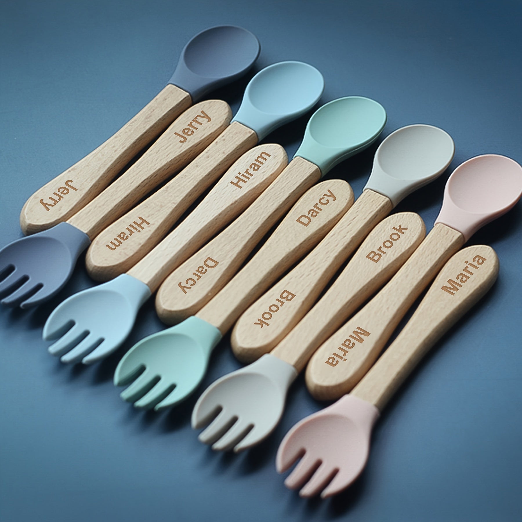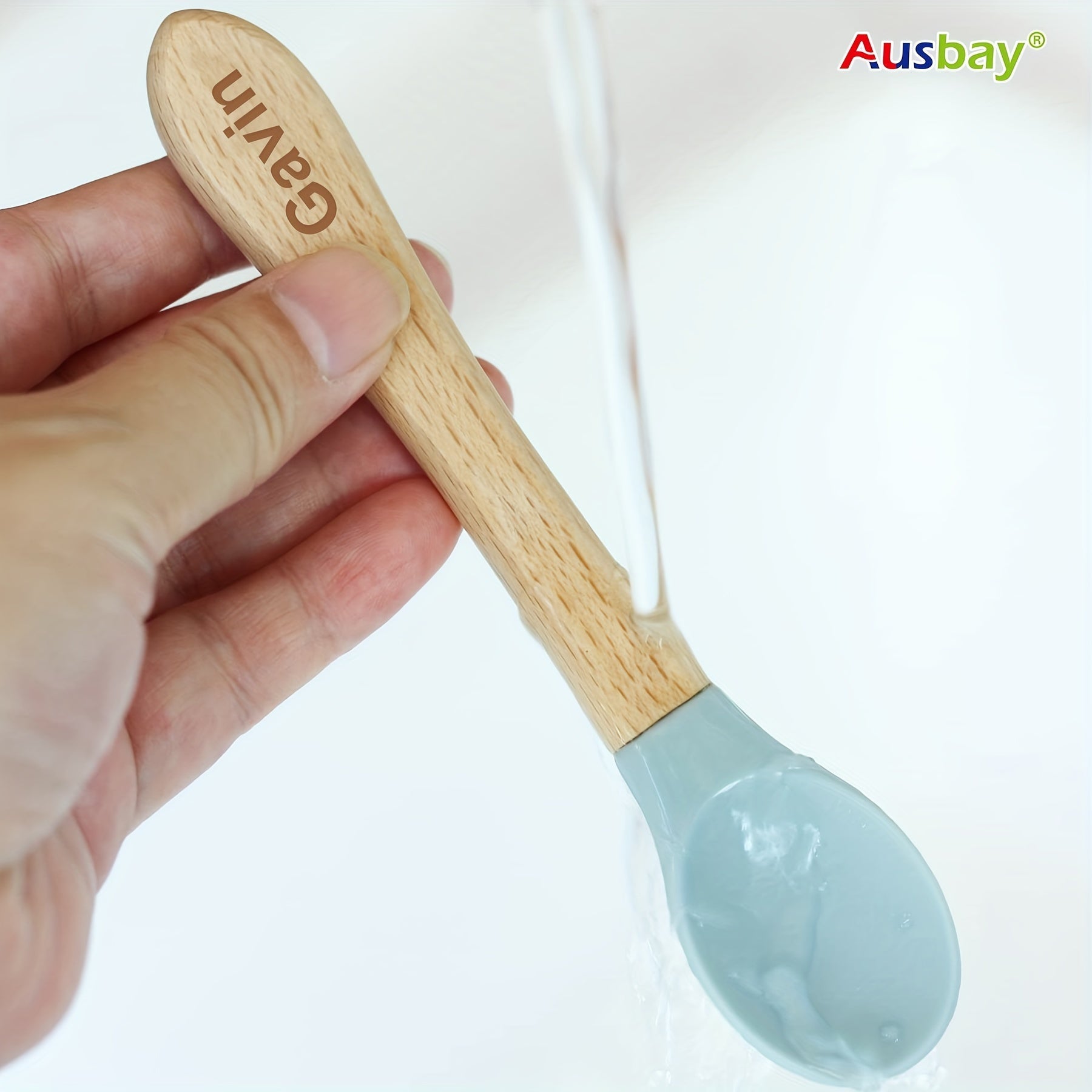 Набор из 2-х предметов персонализированных силиконовых ложки и вилки Ausbay для детей - прочный и надежный с ручкой с индивидуальным именем - идеален для детей и коллекционеров