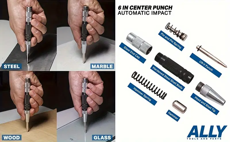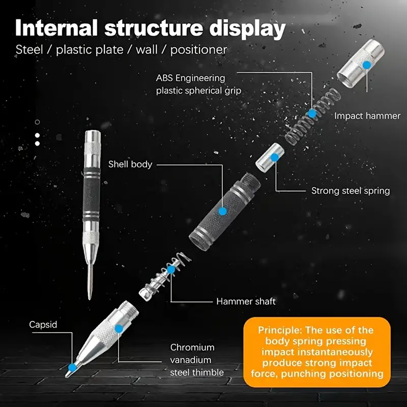 Автоматический центрирующий ударник из быстрорежущей стали 130 мм, прочный ручной инструмент из алюминиевого сплава для металла, дерева, стекла