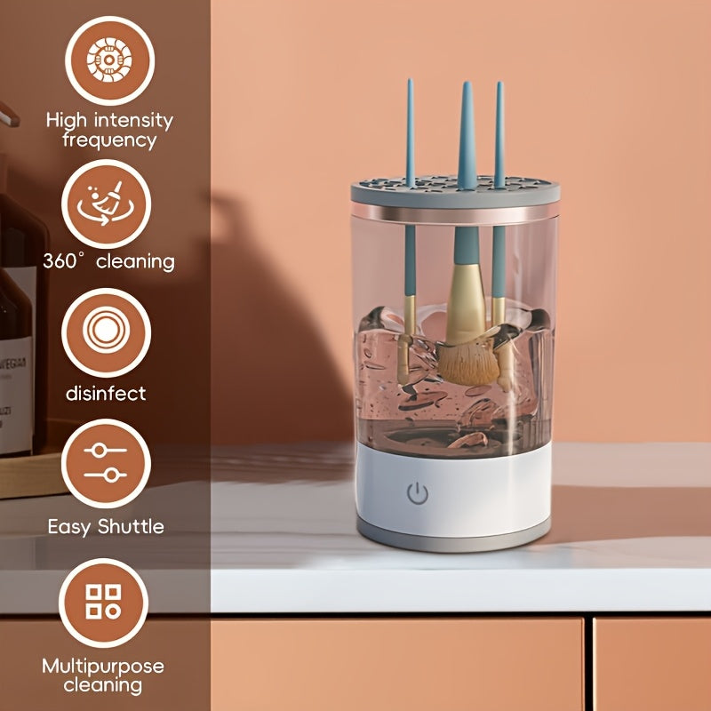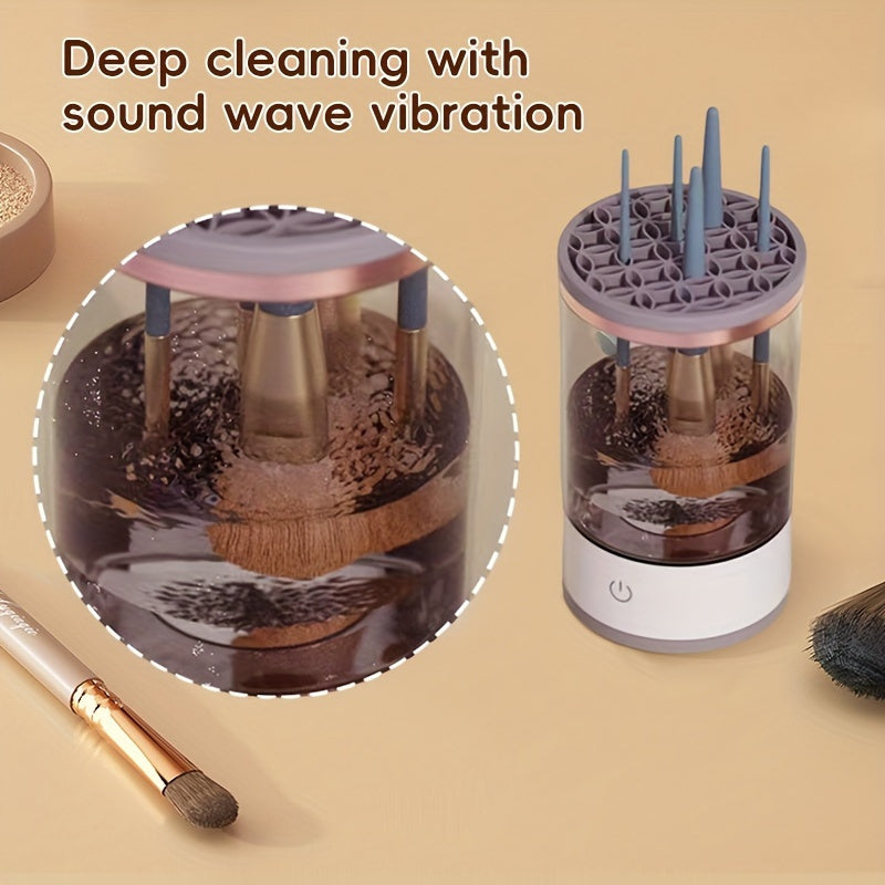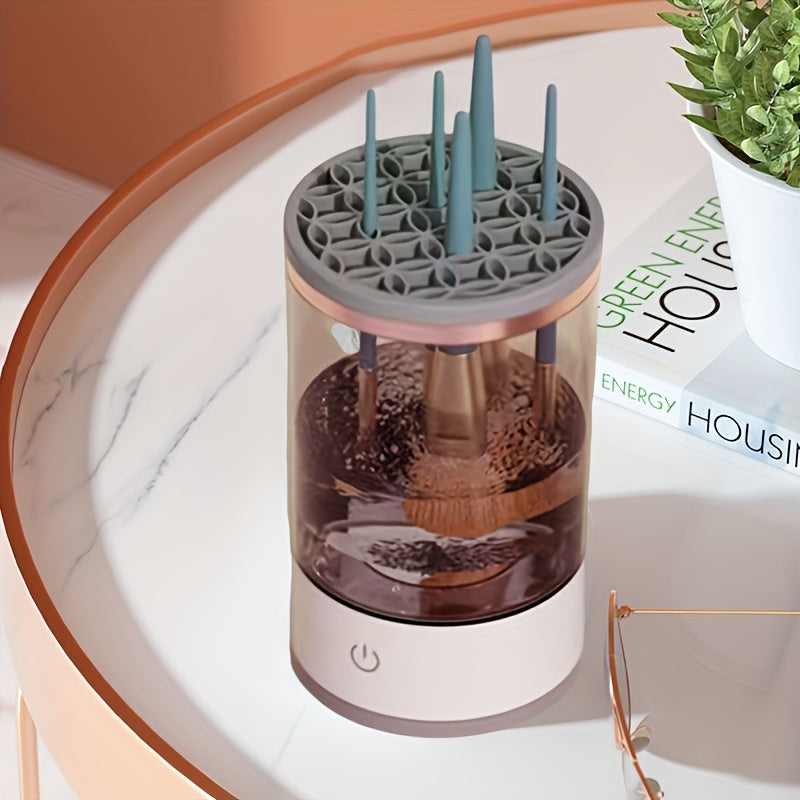 АвтоPro USB-заряжаемый автоматический очиститель для кистей для макияжа с электрической сушкой, управление одним нажатием. Портативный аксессуар, не требующий батареек и не содержащий спирта.