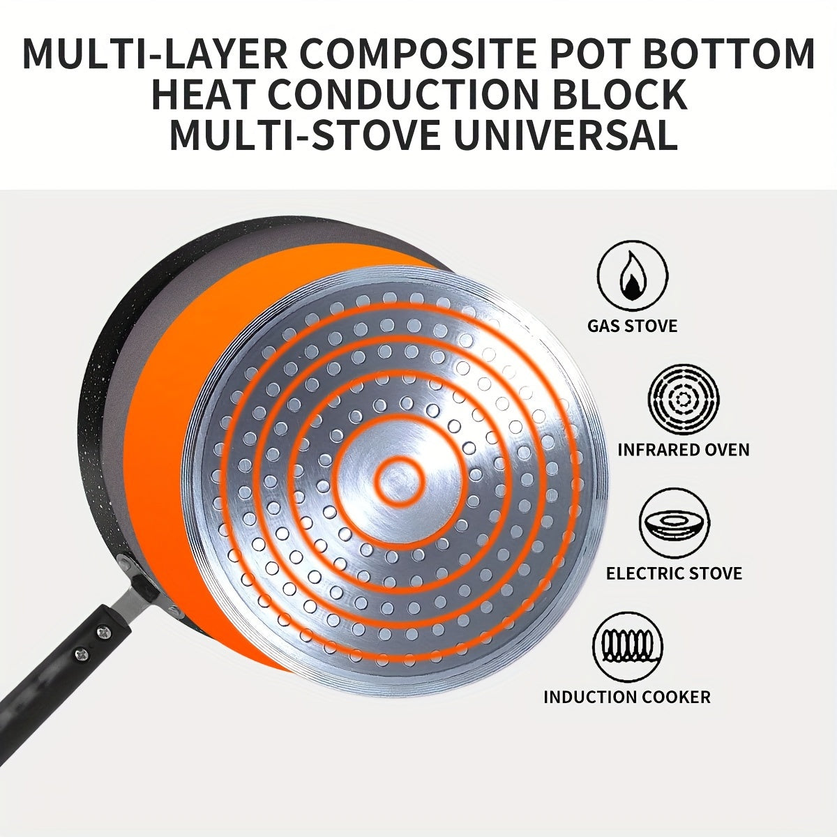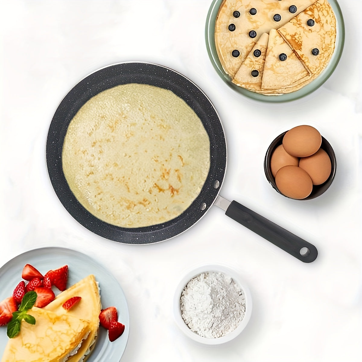 Антипригарная черная сковорода для блинов из маифанского камня с ручкой, алюминий, совместима с индукционной газовой плитой, размеры 26,01 см, 22,0 см, 18,01 см