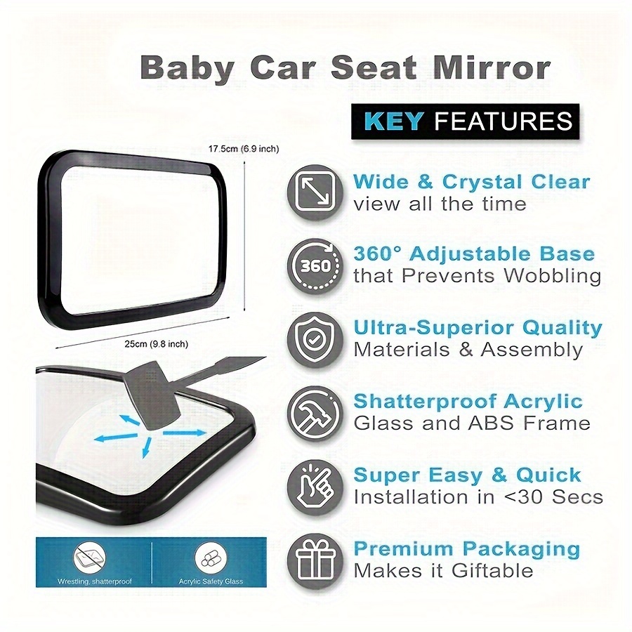 Зеркало для детской машины, устойчивое к разбитию, вращение на 360°, широкий кристально чистый обзор