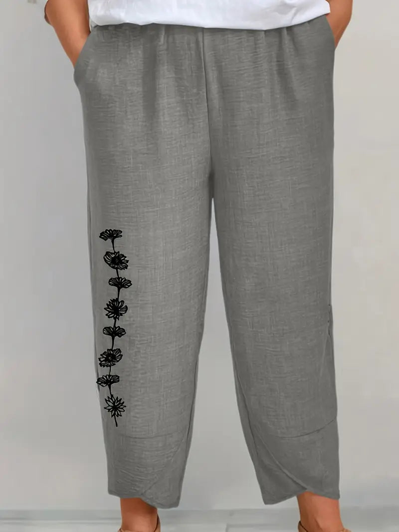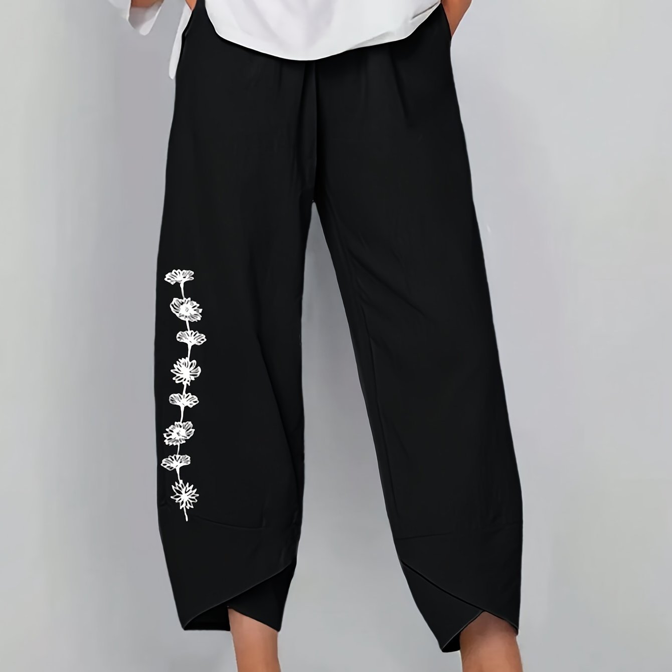 Брюки мешковатого кроя с принтом одуванчика большого размера, полиэстер, цветочные, повседневные, гарем для весны и осени