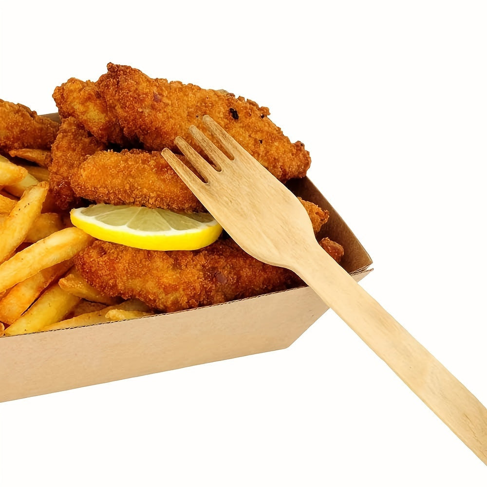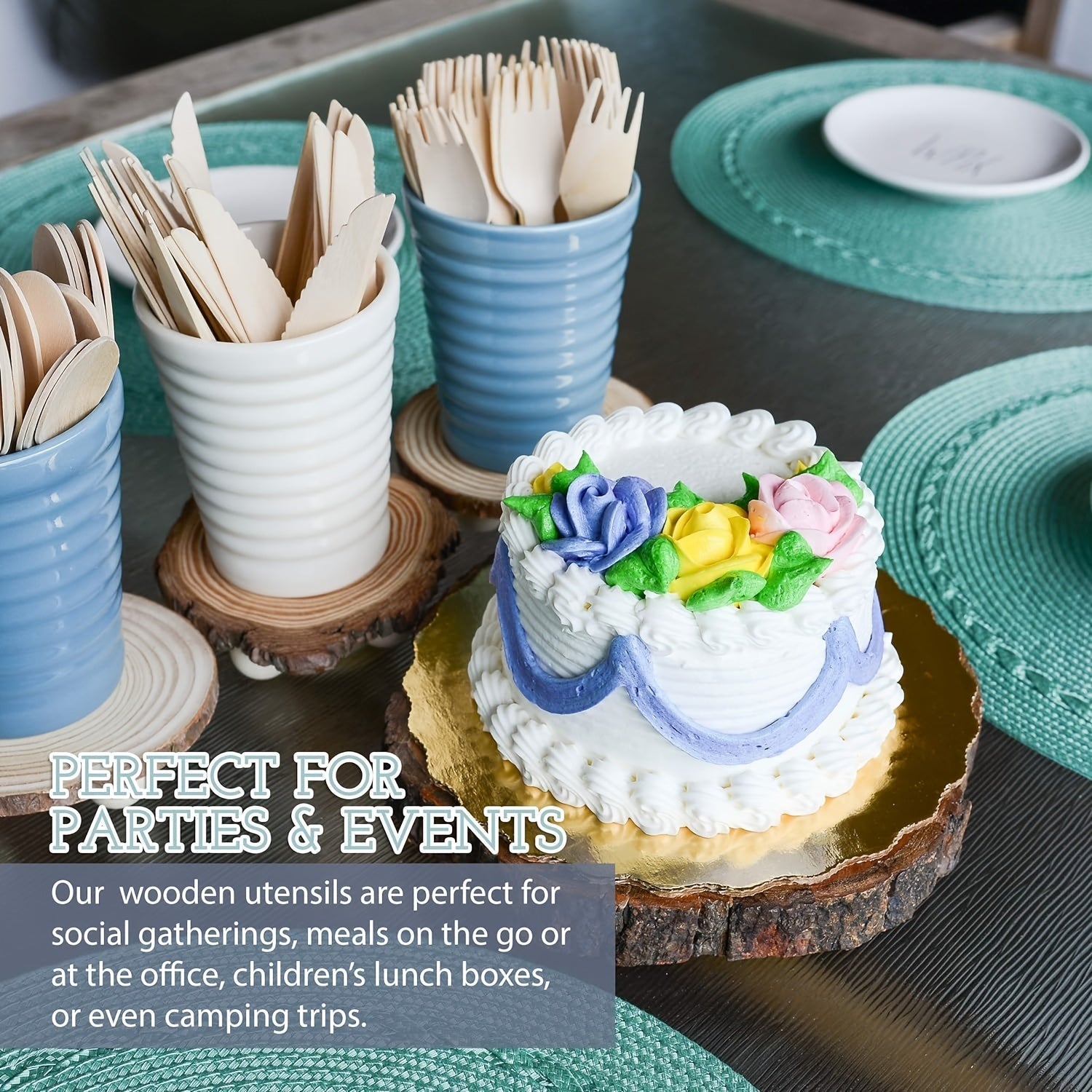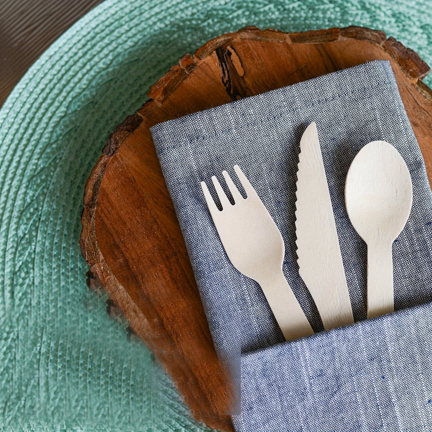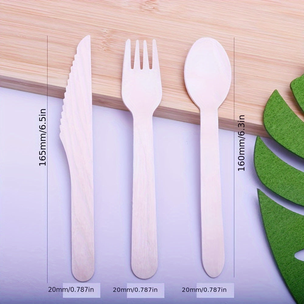 Набор одноразовых столовых приборов из бамбука и дерева (100 предметов - 50 вилок, 25 ложек, 25 ножей). Идеально подходит для свадебных вечеринок, кемпинга на открытом воздухе и мероприятий общественного питания.