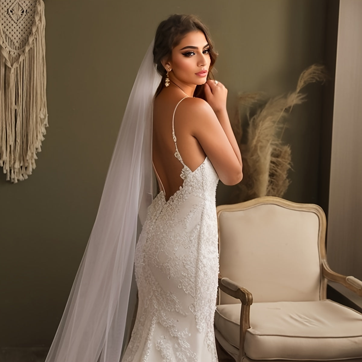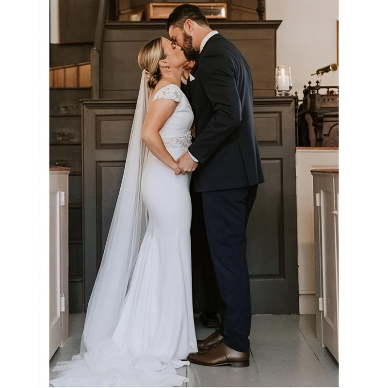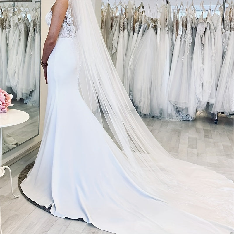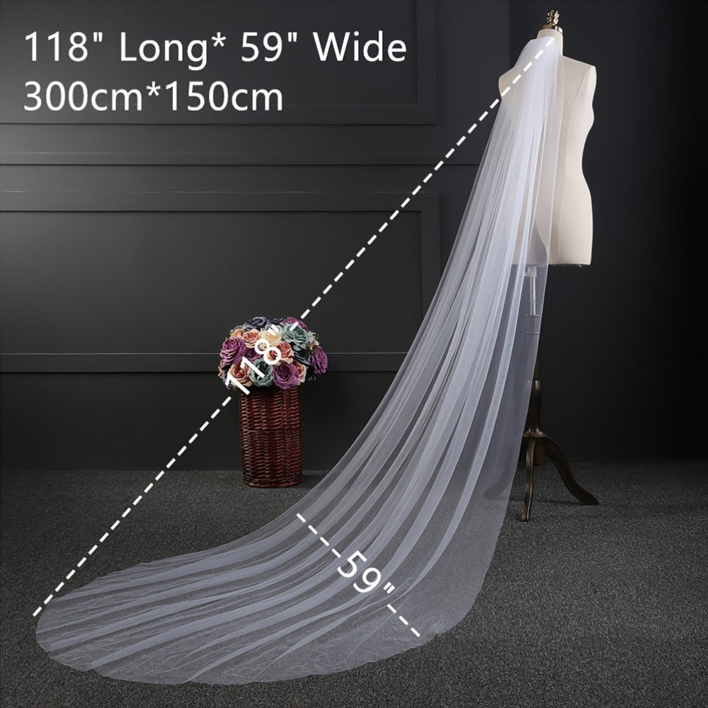 Свадебная фата для невесты с длинным шлейфом из тюля, однослойная, для особых мероприятий