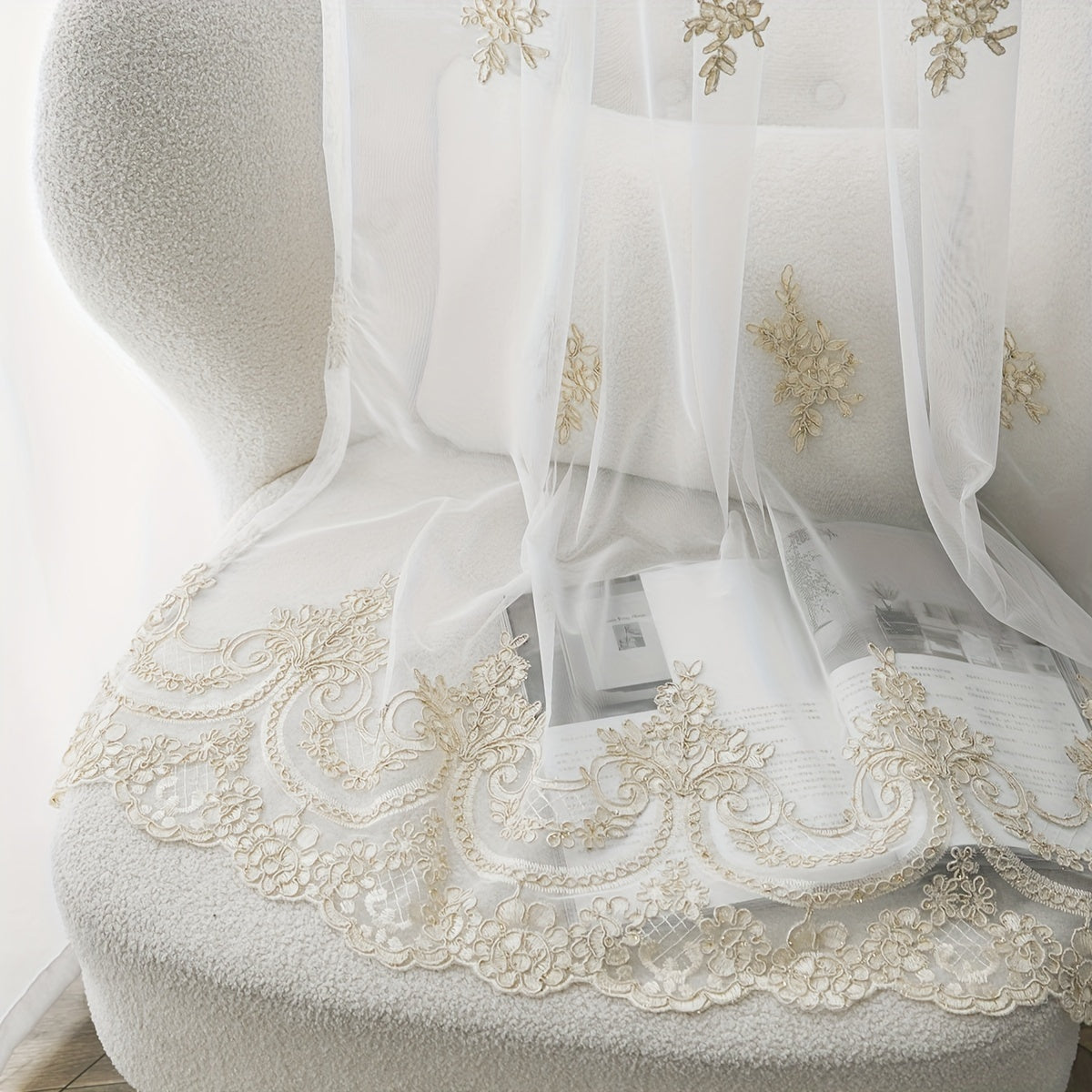 Легкая французская вышитая штора с маленькими цветами, белая полупрозрачная, для гостиной и спальни