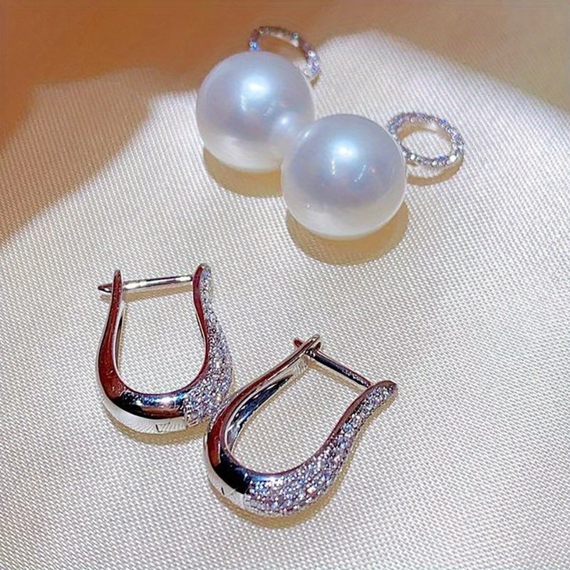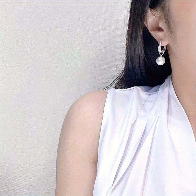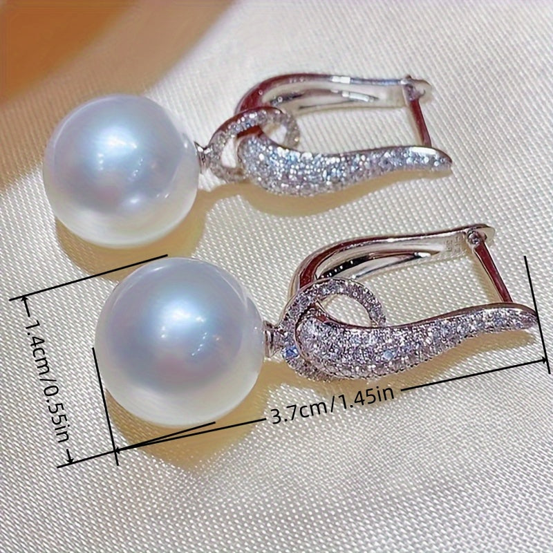 Красивые блестящие серьги из циркония для женщин, покрытые серебром 925 пробы с подвеской из искусственного жемчуга, элегантный дизайн свадебного ювелирного подарка